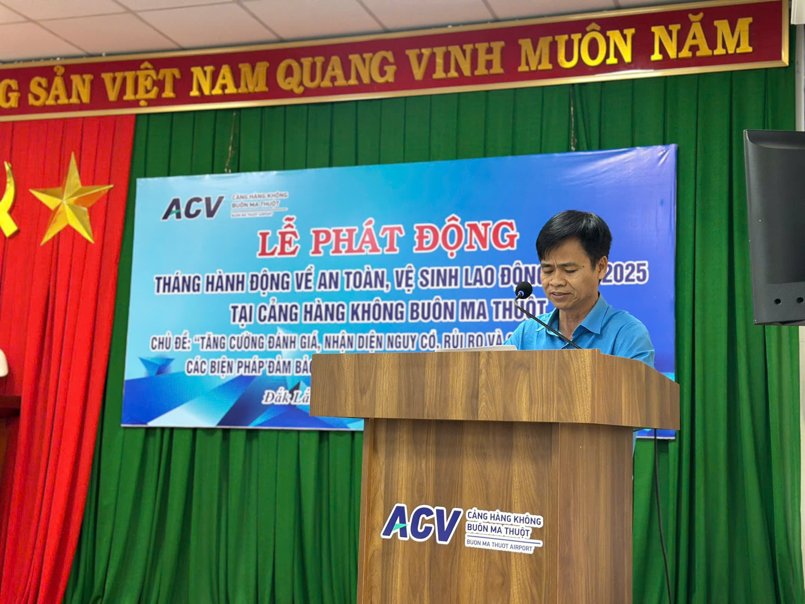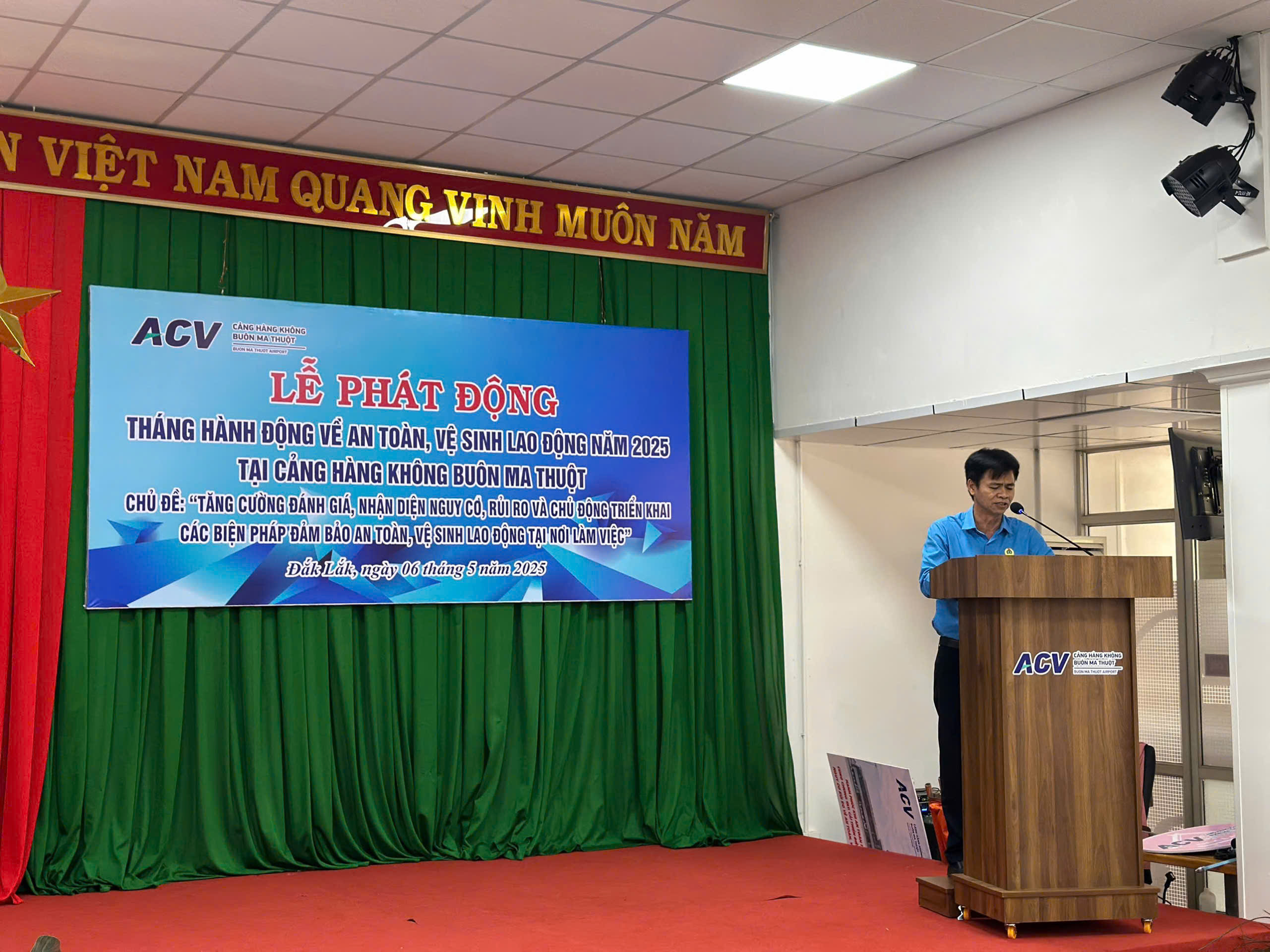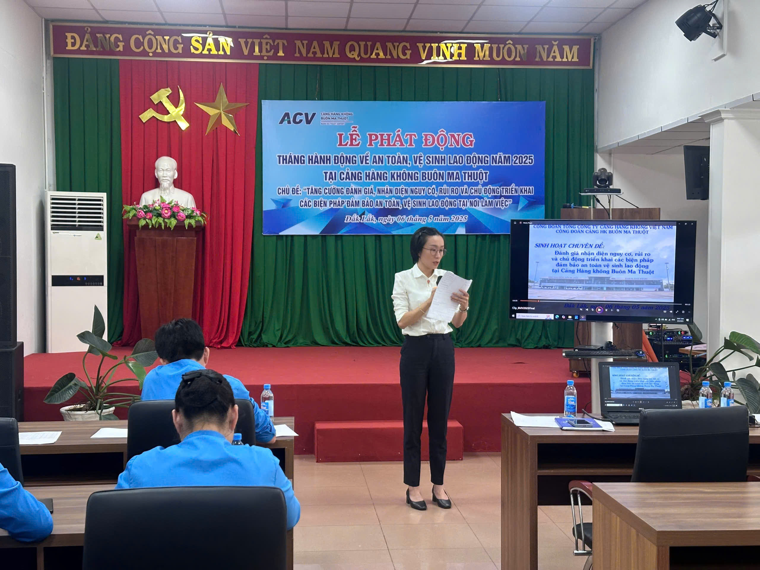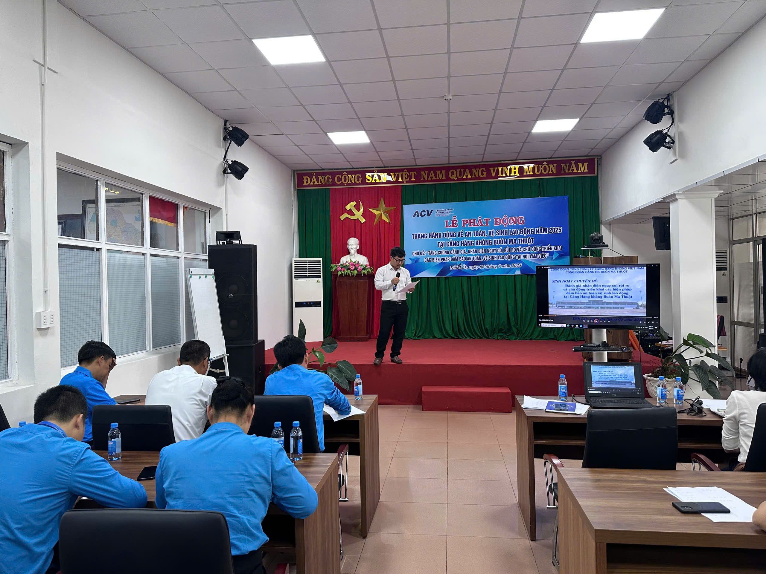 Ngày 06/5/2025, Cảng hàng không Buôn Ma Thuột chính thức phát động Lễ hưởng ứng tháng An toàn, vệ sinh lao động năm 2025 với chủ đề: “Tăng cường đánh giá, nhận diện nguy cơ, rủi ro và chủ động triển khai các biện pháp đảm bảo an toàn, vệ sinh lao động tại nơi làm việc”. Ban giám đốc và Ban Chấp hành Công đoàn cơ sở Cảng hàng không Buôn Ma Thuột kêu gọi: