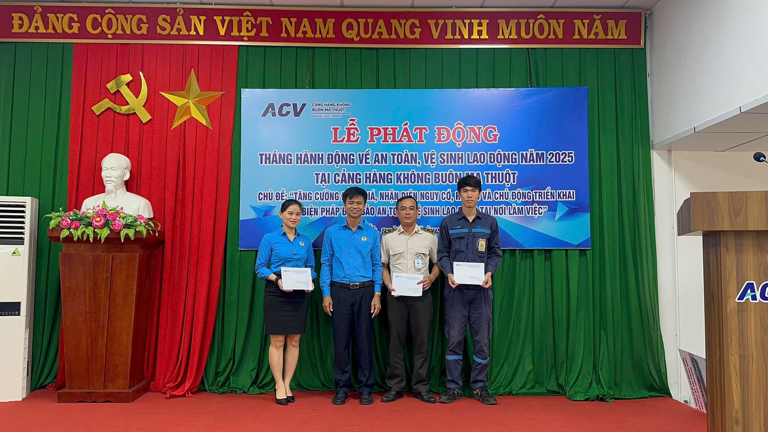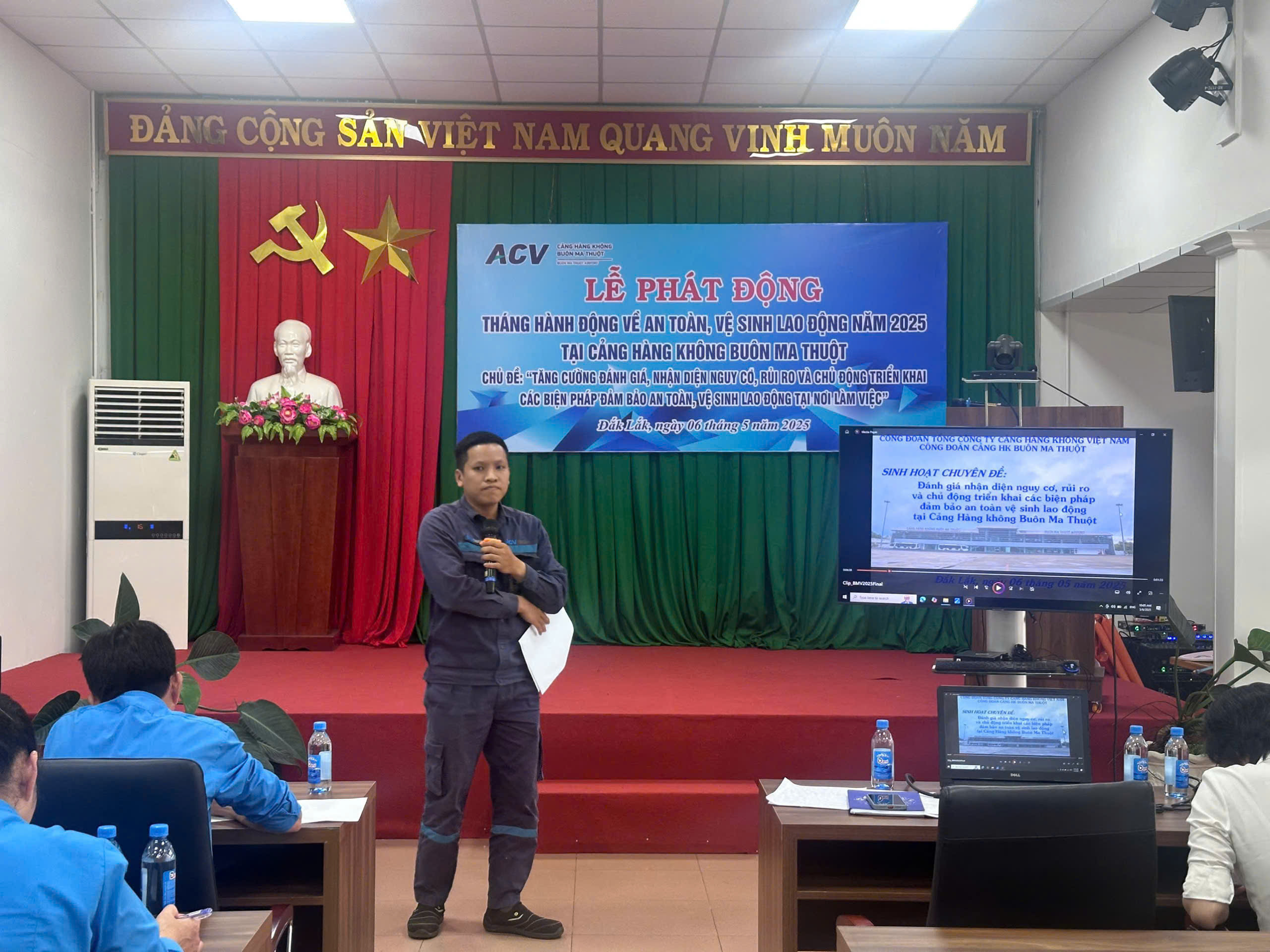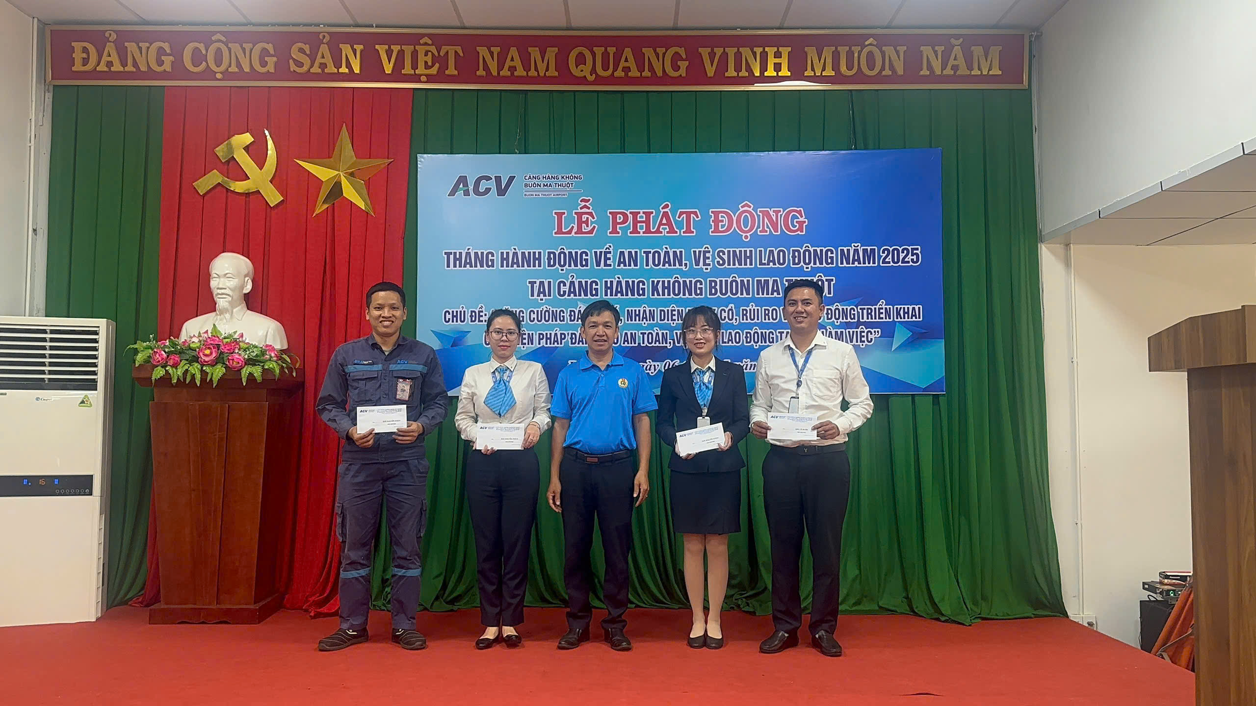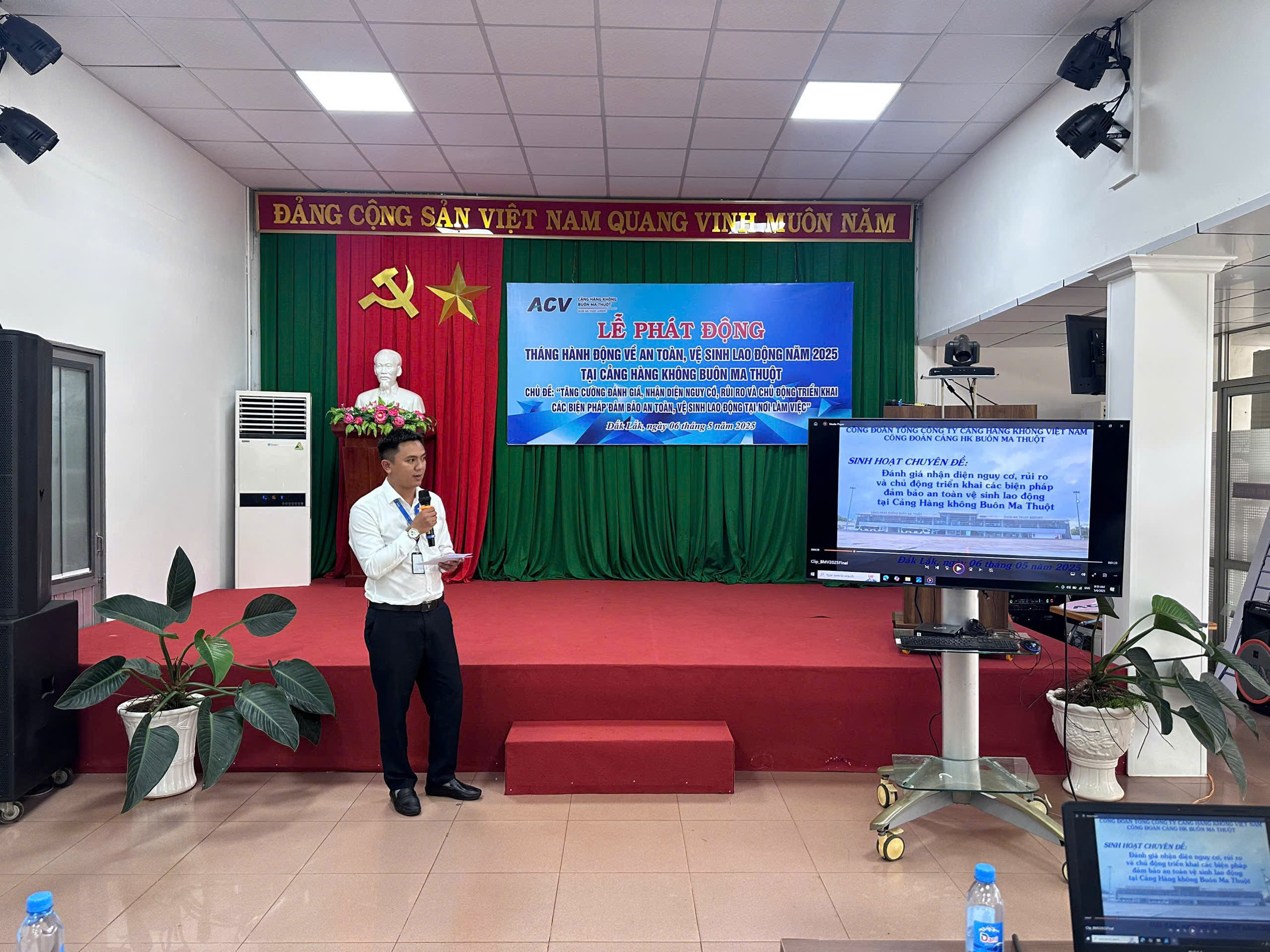 Ngày 06/5/2025, Cảng hàng không Buôn Ma Thuột chính thức phát động Lễ hưởng ứng tháng An toàn, vệ sinh lao động năm 2025 với chủ đề: “Tăng cường đánh giá, nhận diện nguy cơ, rủi ro và chủ động triển khai các biện pháp đảm bảo an toàn, vệ sinh lao động tại nơi làm việc”. Ban giám đốc và Ban Chấp hành Công đoàn cơ sở Cảng hàng không Buôn Ma Thuột kêu gọi:
