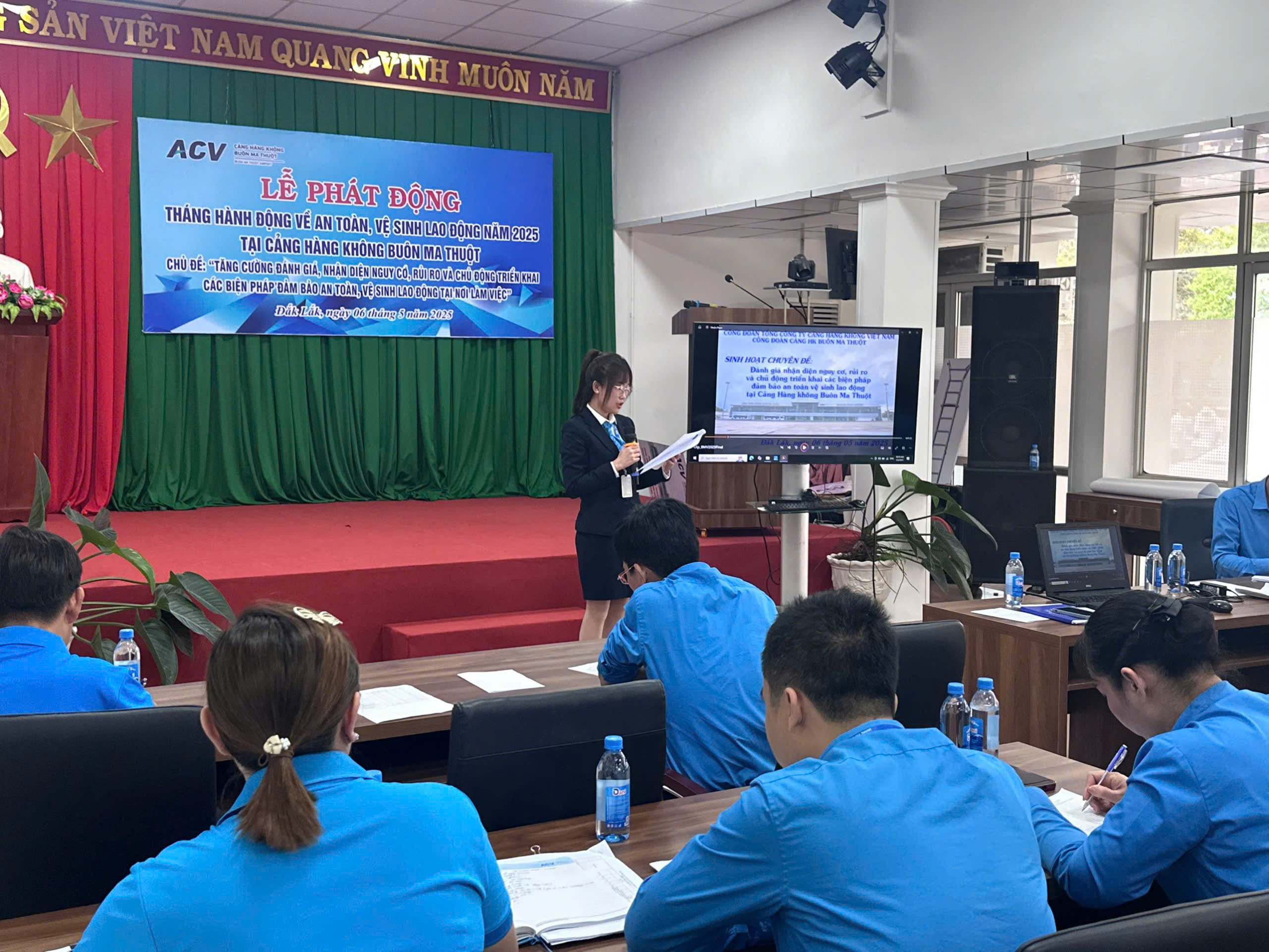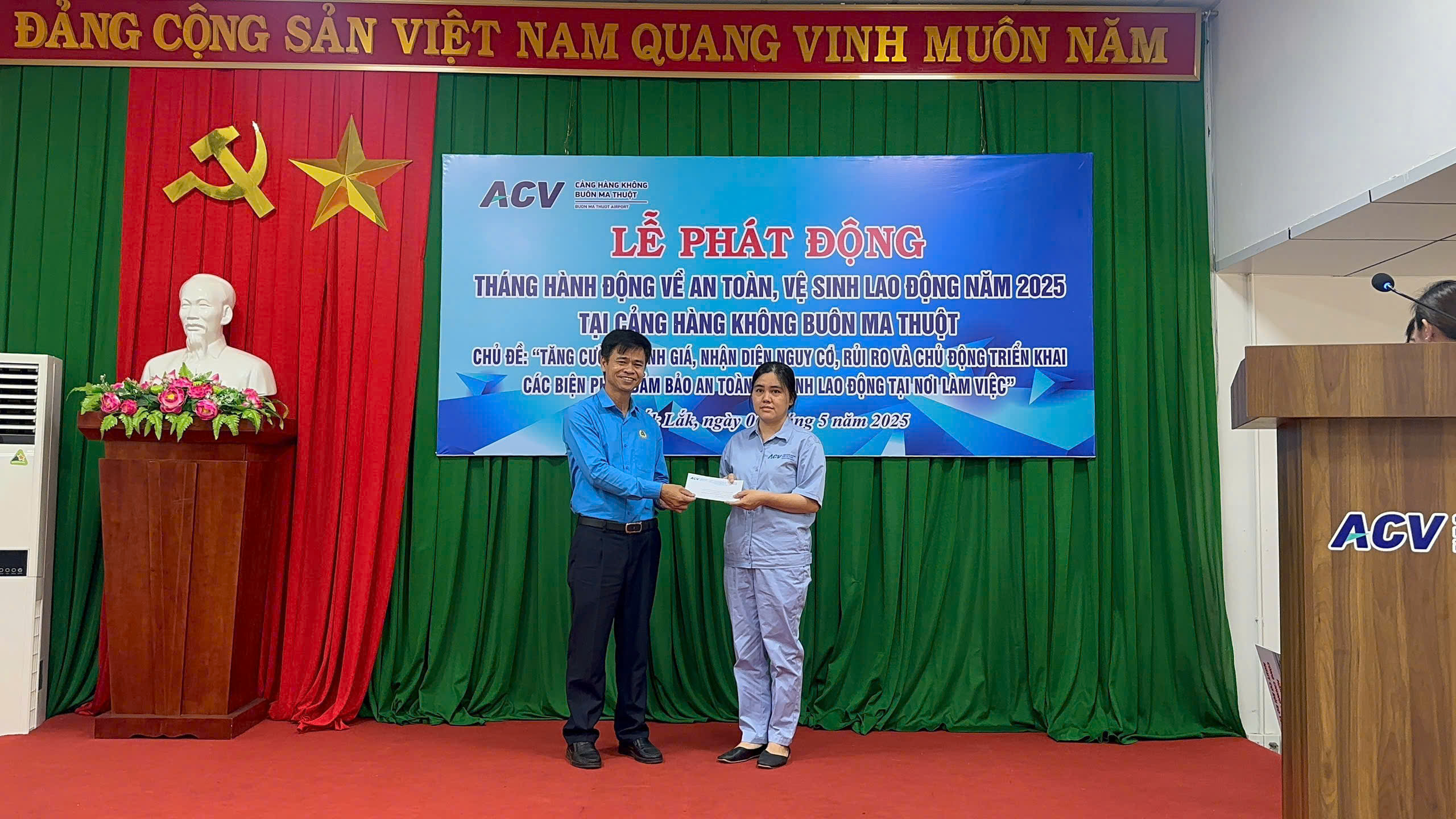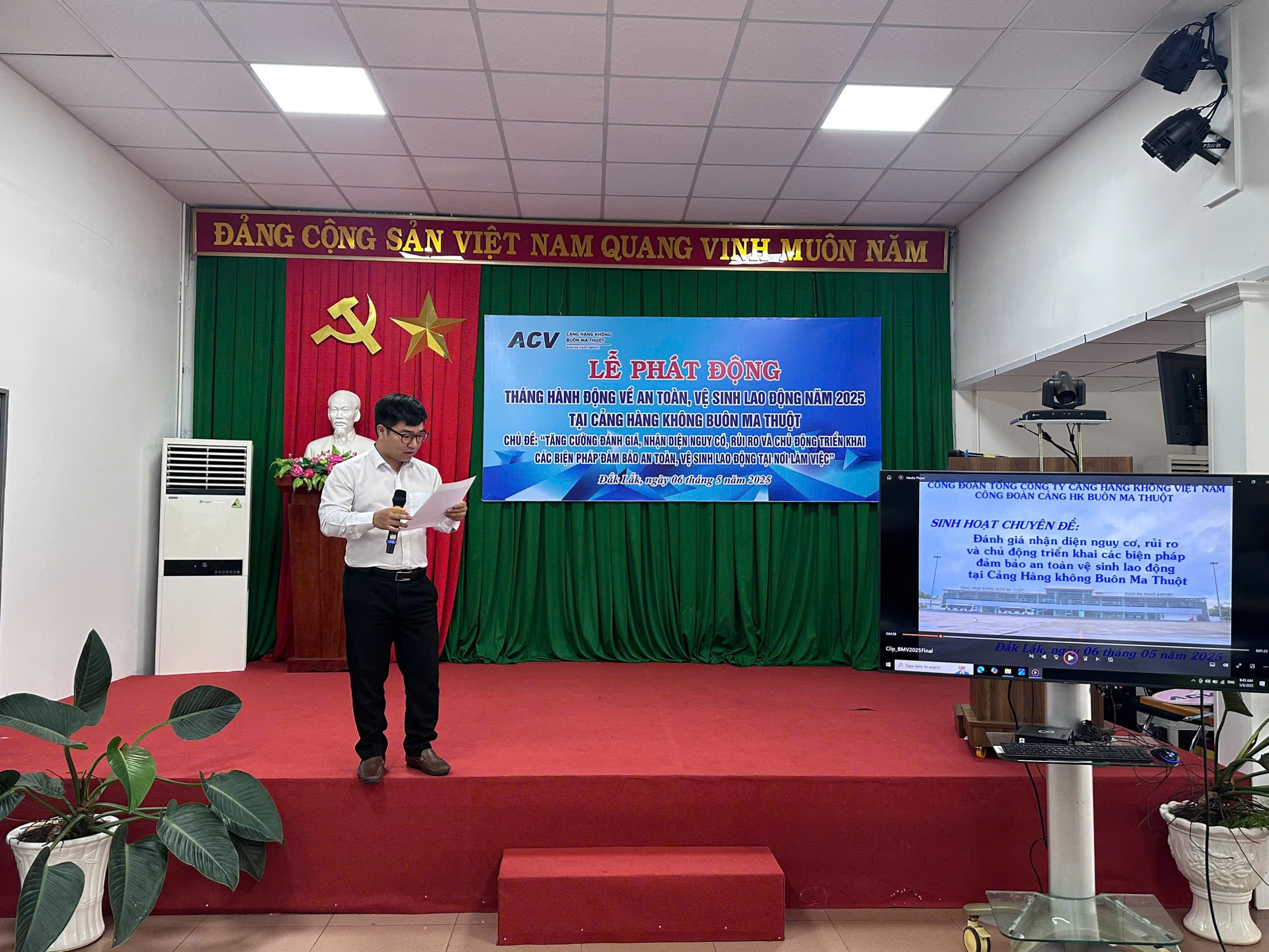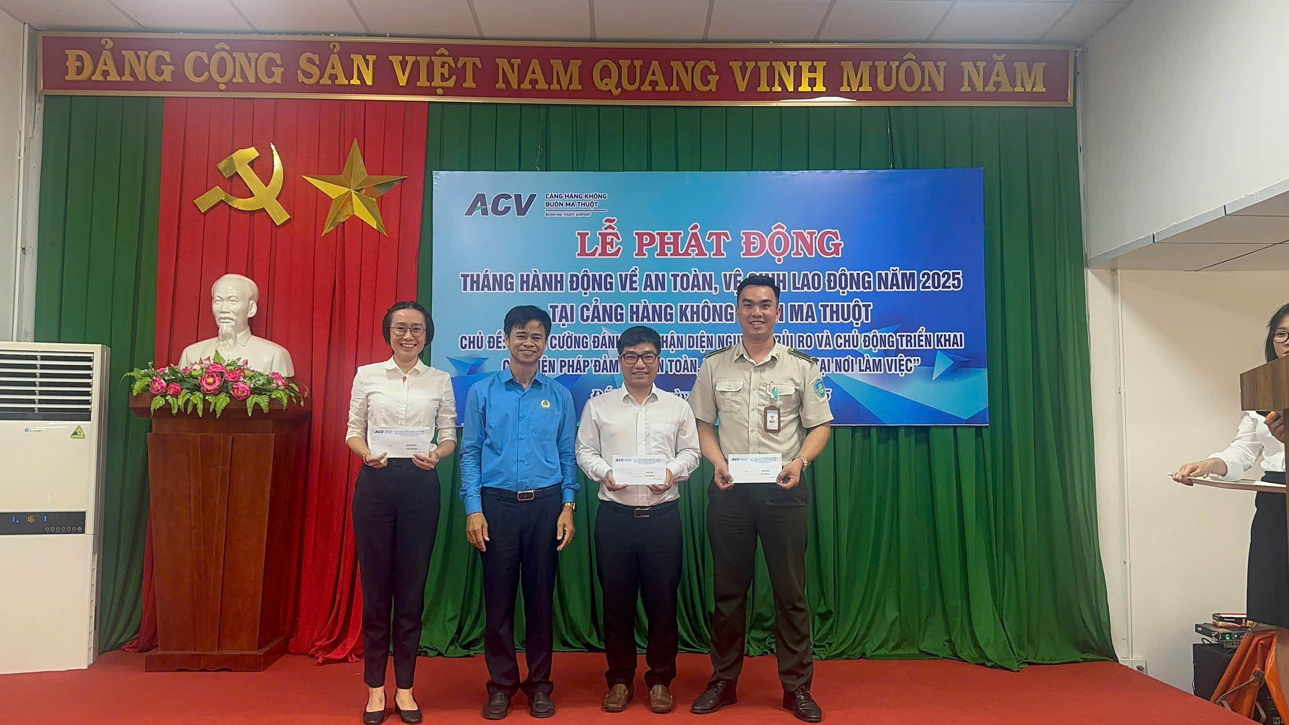 Ngày 06/5/2025, Cảng hàng không Buôn Ma Thuột chính thức phát động Lễ hưởng ứng tháng An toàn, vệ sinh lao động năm 2025 với chủ đề: “Tăng cường đánh giá, nhận diện nguy cơ, rủi ro và chủ động triển khai các biện pháp đảm bảo an toàn, vệ sinh lao động tại nơi làm việc”. Ban giám đốc và Ban Chấp hành Công đoàn cơ sở Cảng hàng không Buôn Ma Thuột kêu gọi: