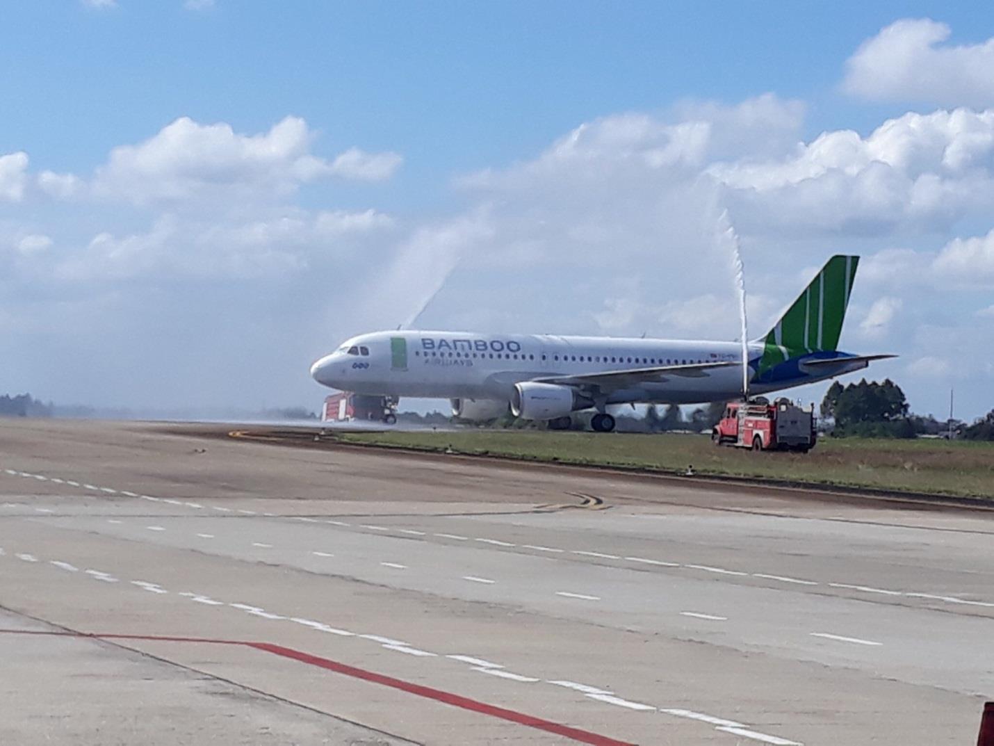 Nghi thức phun vòi rồng chào đón chuyến bay đầu tiên của Bamboo Airways tại Cảng hàng không Buôn Ma Thuột