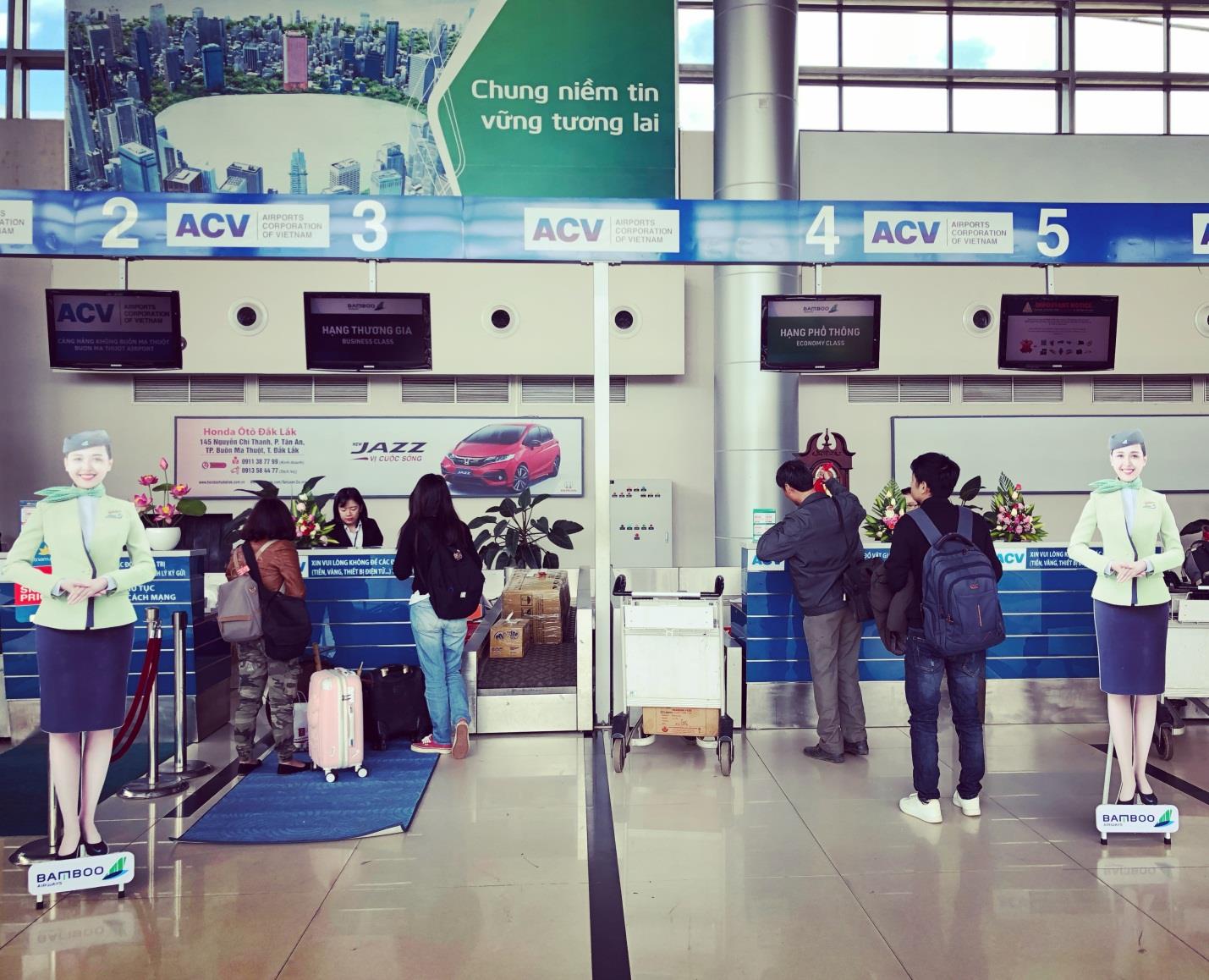 Các hành khách đầu tiên của Bamboo Airways làm thủ tục khởi hành đi Hà Nội tại Cảng hàng không Buôn Ma Thuột