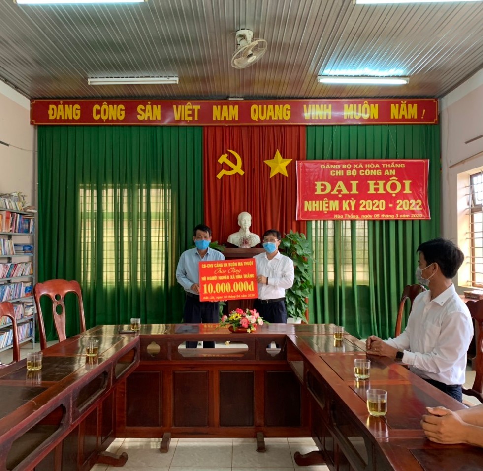 Sáng ngày 14/04/2020, đ/c Nguyễn Chánh Duy - Giám đốc Cảng HK Buôn Ma Thuột cùng đ/c Lê Trung Bình – Chủ tịch Công đoàn Cảng HK Buôn Ma Thuột đại diện cho toàn bộ CB-CNV Cảng HK Buôn Ma Thuột đến trao tặng số tiền quyên góp 10.000.000 đồng cho UBND xã Hòa Thắng.