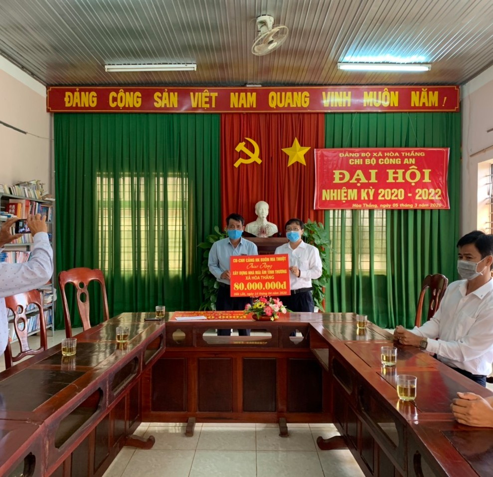 Bên cạnh hỗ trợ công tác phòng, chống dịch, đ/c Nguyễn Chánh Duy cũng trao tặng số tiền quyên góp của CB-CNV trong những năm qua là 80.000.000 đồng, nhằm hỗ trợ xây dựng mái ấm tình thương cho đối tượng là hộ nghèo, hoàn cảnh khó khăn của xã Hòa Thắng. UBND Xã Hòa Thắng chịu trách nhiệm tìm kiếm, sàng lọc đối tượng đủ điều kiện hỗ trợ xây dựng nhà tình thương và thông báo cho Cảng để phối hợp thực hiện.