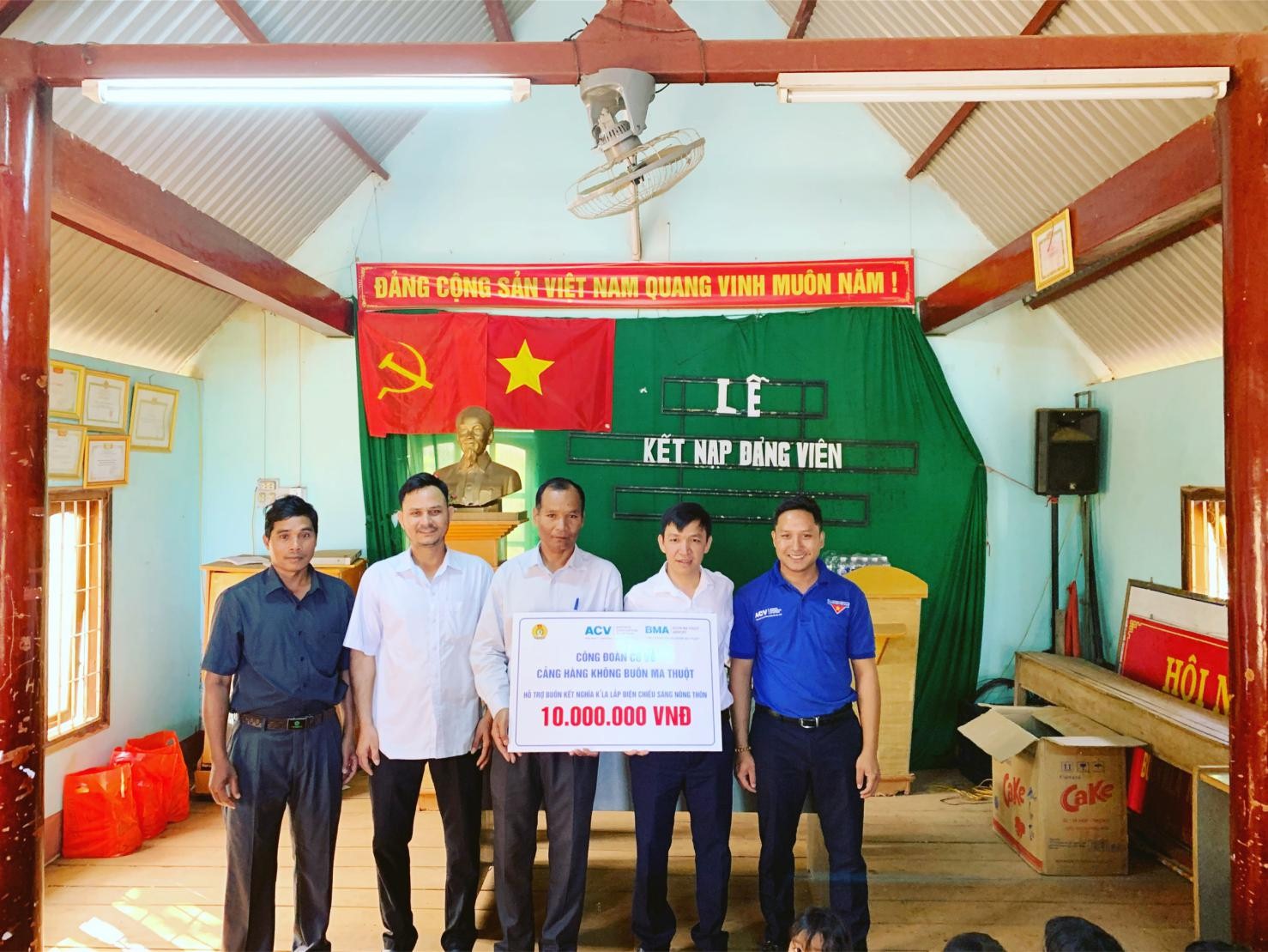 Đoàn thanh niên Cảng trao phần quà tiền mặt cho đại diện xã Đray Sáp
