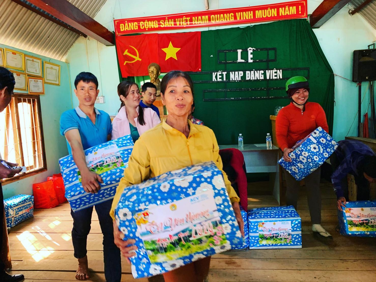 Người dân buôn K’La vui vẻ nhận quà nhân dịp năm mới Canh Tý 2020