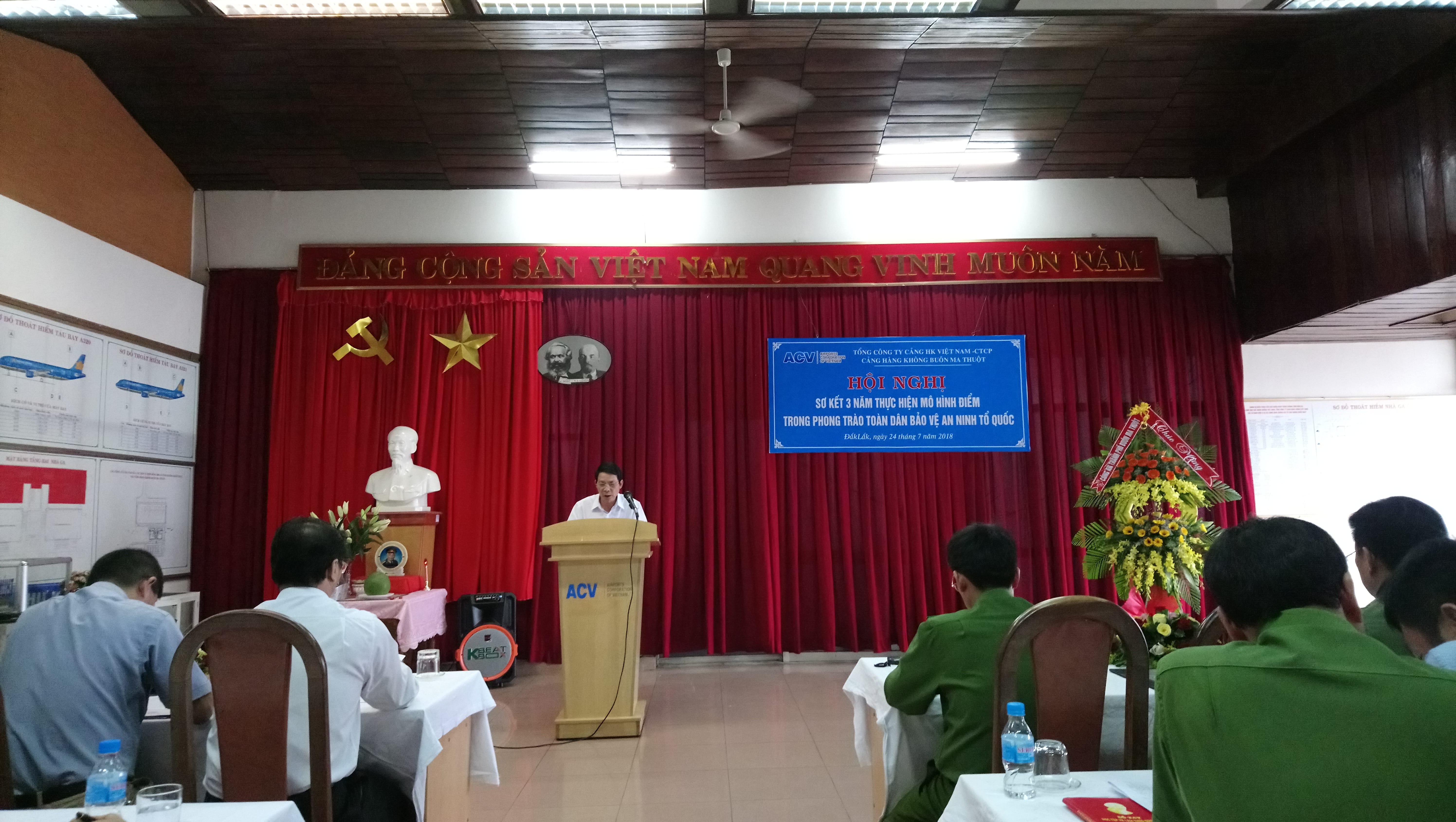 Sau 03 năm triển khai thực hiện mô hình điểm (2015-2018) ngày 24/7/2018 trên cơ sở ý kiến tham mưu hướng dẫn của các đơn vị chức năng thuộc Công an Tỉnh Đắk Lắk và chỉ đạo của cấp trên Cảng hàng không Buôn Ma Thuột đã tổ chức Hội nghị sơ kết 03 năm thực hiện mô hình điểm trong Phong trào toàn dân bảo vệ an ninh Tổ quốc.