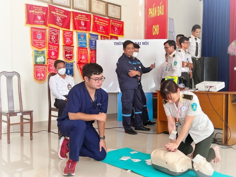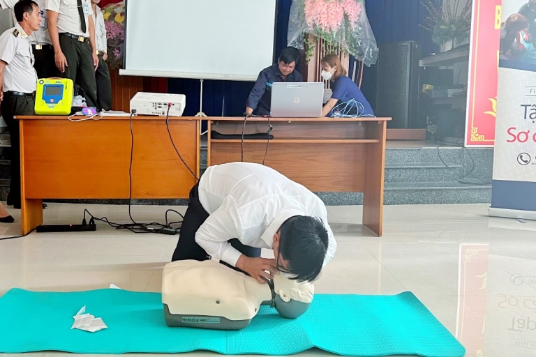 Tại buổi huấn luyện, CBCNV tại đơn vị được cán bộ y tế chia sẻ, truyền đạt các kiến thức cần thiết để xử lý các tình huống khẩn cấp. Được thực hành trực tiếp trên mô hình các động tác hô hấp nhân tạo, hà hơi thổi ngạt và sử dụng máy khử rung tim đúng phương pháp. Qua buổi huấn luyện, hầu hết các CBCNV đều nắm được các thông tin, kỹ thuật, các bước ban đầu để sơ cấp cứu nạn nhân và cách sử dụng hiệu quả nhất đối với “Máy khử rung tim bên ngoài tự động”.