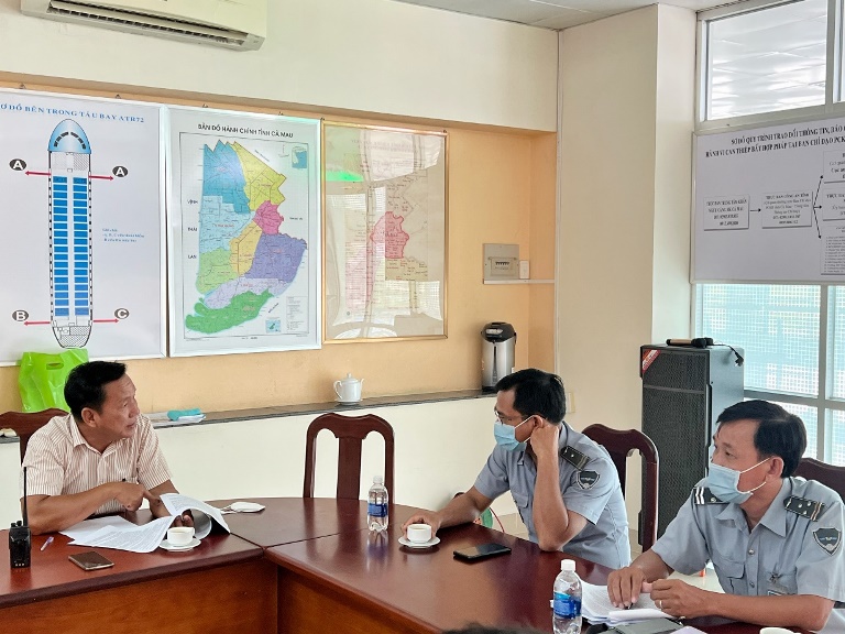 Đoàn kiểm tra gồm có Ông Huỳnh Quang Phong, Trưởng đại diện Cảng vụ HKMN tại Cà Mau – Trưởng đoàn, Ông Dương Viết Thoại – Chuyên viên Phòng giám sát ANHK Cảng vụ HKMN và các chuyên viên Đại diện Cảng vụ HKMN tại Cà Mau.