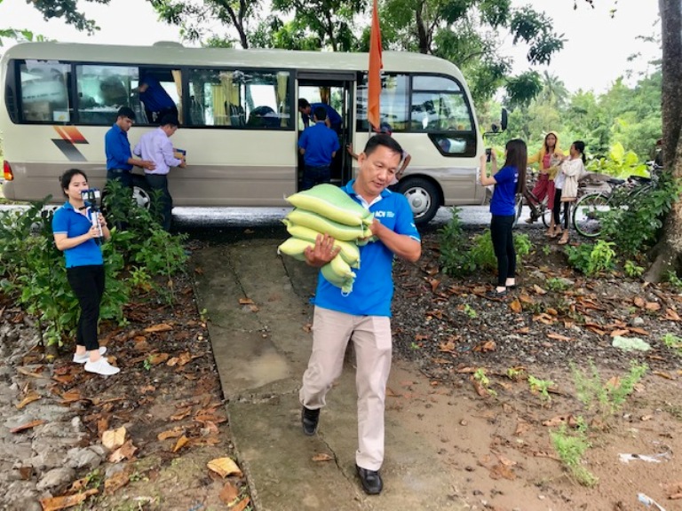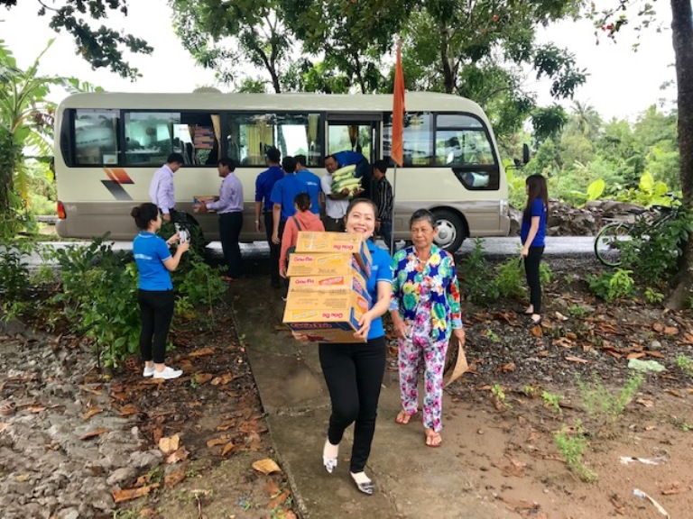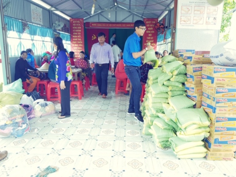 Tại đây, đoàn trực tiếp thăm hỏi, động viên và trao 96 suất quà với tổng giá trị 21 triệu đồng cho người dân thuộc hộ nghèo, cận nghèo bị thiệt hại do ảnh hưởng bởi cơn bão số 3 vừa qua trên địa bàn 2 ấp Cơi 5A và Cơi 5B.