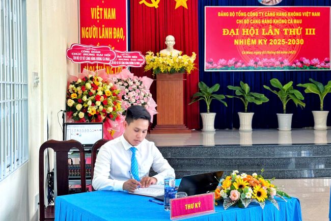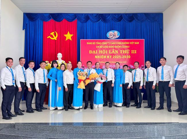 Vào ngày 05/06/2025, Chi bộ cơ sở Cảng hàng không Cà Mau đã long trọng tổ chức Đại hội lần thứ III, nhiệm kỳ 2025–2030. Đại hội diễn ra trong không khí trang nghiêm, dân chủ, đoàn kết và đầy trách nhiệm.