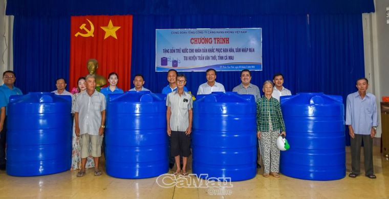 Sáng nay (9/5), Công đoàn Tổng Công ty Cảng Hàng không Việt Nam phối hợp với Cảng Hàng không Cà Mau tổ chức trao tặng 30 bồn trữ nước loại 1.000 lít cho 30 hộ dân khó khăn trên địa bàn thị trấn Trần Văn Thời, huyện Trần Văn Thời.