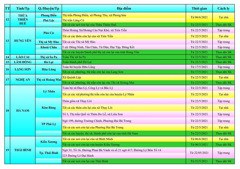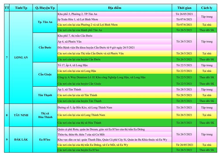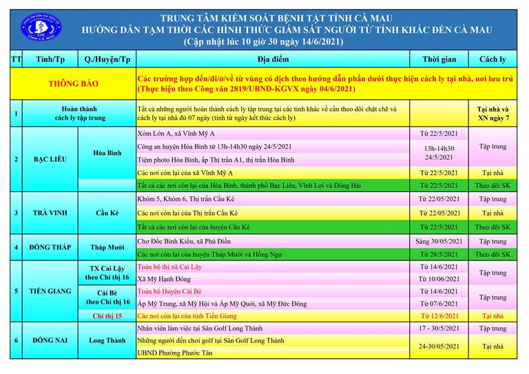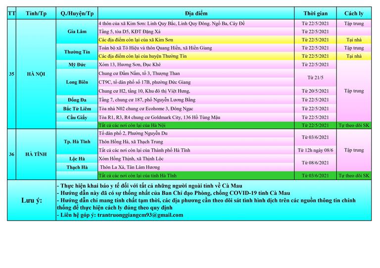 Cập nhật Danh sách các địa phương co dịch COVID-19 lưu hành và Hướng dẫn giám sát cách ly xã hội người từ các tỉnh khác đến Cà Mau