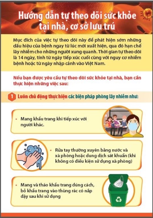Hành khách chủ động thông báo với chính quyền địa phương nơi cư trú, lưu trú; tự theo dõi sức khoẻ và thực hiện theo quy định cụ thể của từng địa phương về các biện pháp phòng chống dịch COVID-19 kể từ ngày về địa phương; thực hiện 5K; trường hợp có dấu hiệu bất thường về sức khỏe như ho, sốt, khó thở, đau rát họng, mất vị giác... thì thông báo ngay cho cơ quan y tế để theo dõi và triển khai quy trình xử lý dịch bệnh theo quy định.