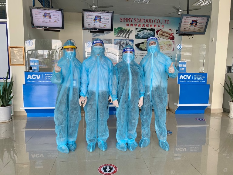 Nhân viên sân bay được trang bị đầy đủ đồ bảo hộ trong suốt quá trình phục vụ.