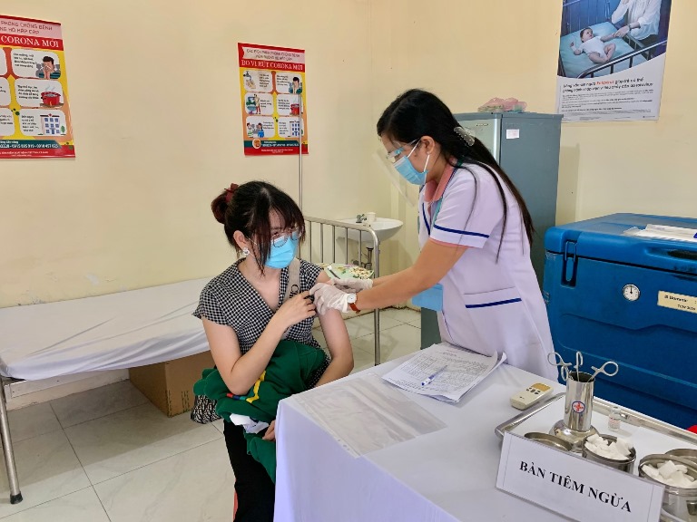 Sau khi tiêm vắc xin phòng ngừa dịch bệnh Covid-19, người lao động được bố trí nghỉ ngơi, theo dõi phản ứng sau tiêm với các phương tiện sơ cứu cần thiết tại trung tâm y tế.