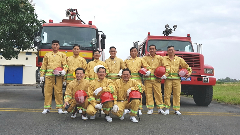 Đội hình chữa cháy sẵn sàng làm nhiệm vụ.