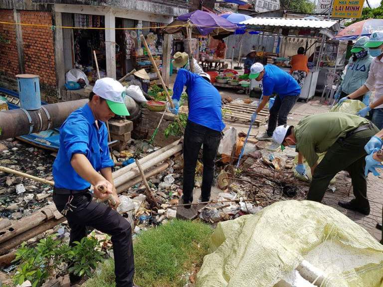 Đoàn viên, thanh niên tiến hành vớt rác và vệ sinh tuyến kênh xáng Cà Mau – Bạc Liêu.