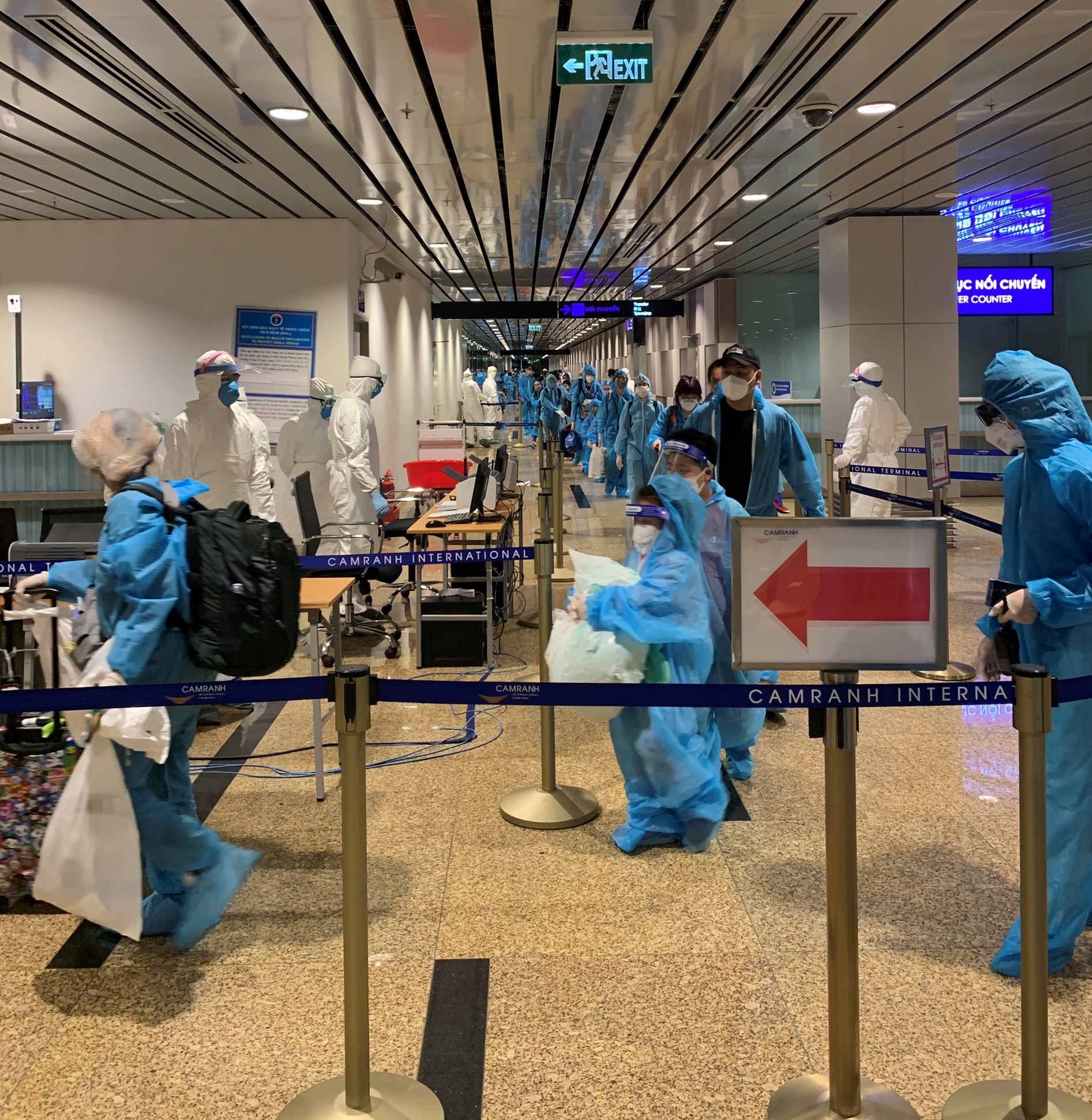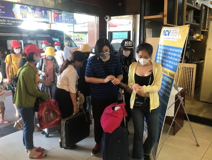 Trước diễn biến phức tạp của dịch Covid -19, để kiểm soát chặt chẽ dịch bệnh, ngăn ngừa không để lây lan trong cộng đồng; Cảng HKQT Cam Ranh đã nhanh chóng triển khai ngay Quy trình đảm bảo an toàn cho hành khách đi máy bay trong giai đoạn Covid – 19 do Tổng công ty Cảng HKVN – CTCP ban hành như: Đo nhiệt độ kiểm soát thân nhiệt, xịt khử khuẩn nhà ga T1 và hành lý, hàng hóa trên các chuyến bay đến từ Đà Nẵng, đeo khẩu trang bắt buộc, sử dụng dung dịch sát khuẩn, trang bị đồ bảo hộ cho cán bộ nhân viên tiếp xúc trực tiếp trong quá trình phục vụ hành khách… Đồng thời phối hợp chặt chẽ với các cơ quan chức năng, các đơn vị phục vụ mặt đất thực hiện nghiêm các quy trình khép kín đưa kiều bào trên các chuyến bay về nước an toàn.