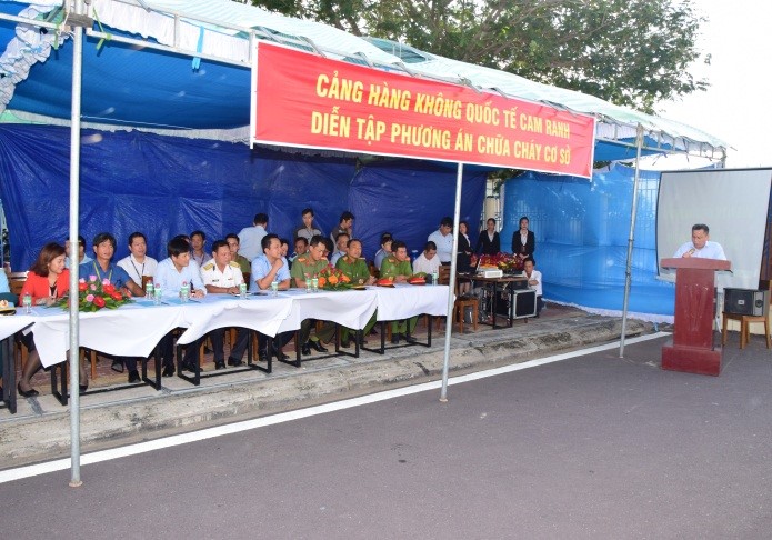 Tới dự buổi diễn tập có đại diện lãnh đạo các cơ quan quản lý nhà nước, đội PCCC số 2- CA tỉnh Khánh Hòa, các đơn vị quân đội, các doanh nghiệp hàng không và phi hàng không hoạt động tại cảng HKQT Cam Ranh.