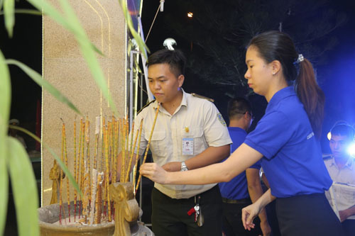 Chiều cùng ngày, Đoàn thanh niên Cảng HKQT Cam Ranh cùng các đ/c đoàn viên ưu tú đã tham gia buổi lễ dâng hương tưởng niệm tại Nghĩa trang liệt sỹ thành phố Cam Ranh do thành đoàn thành phố Cam Ranh tổ chức.