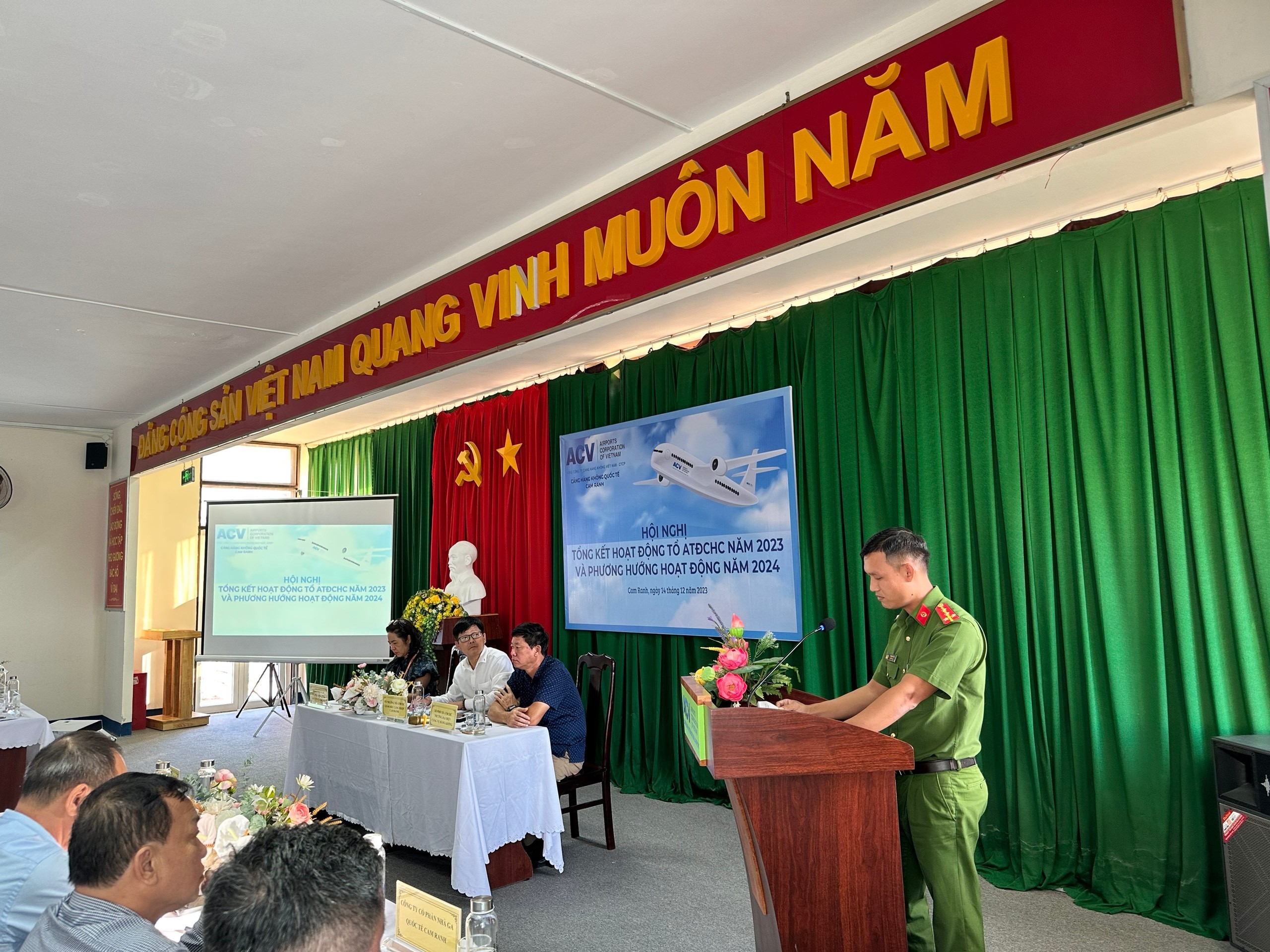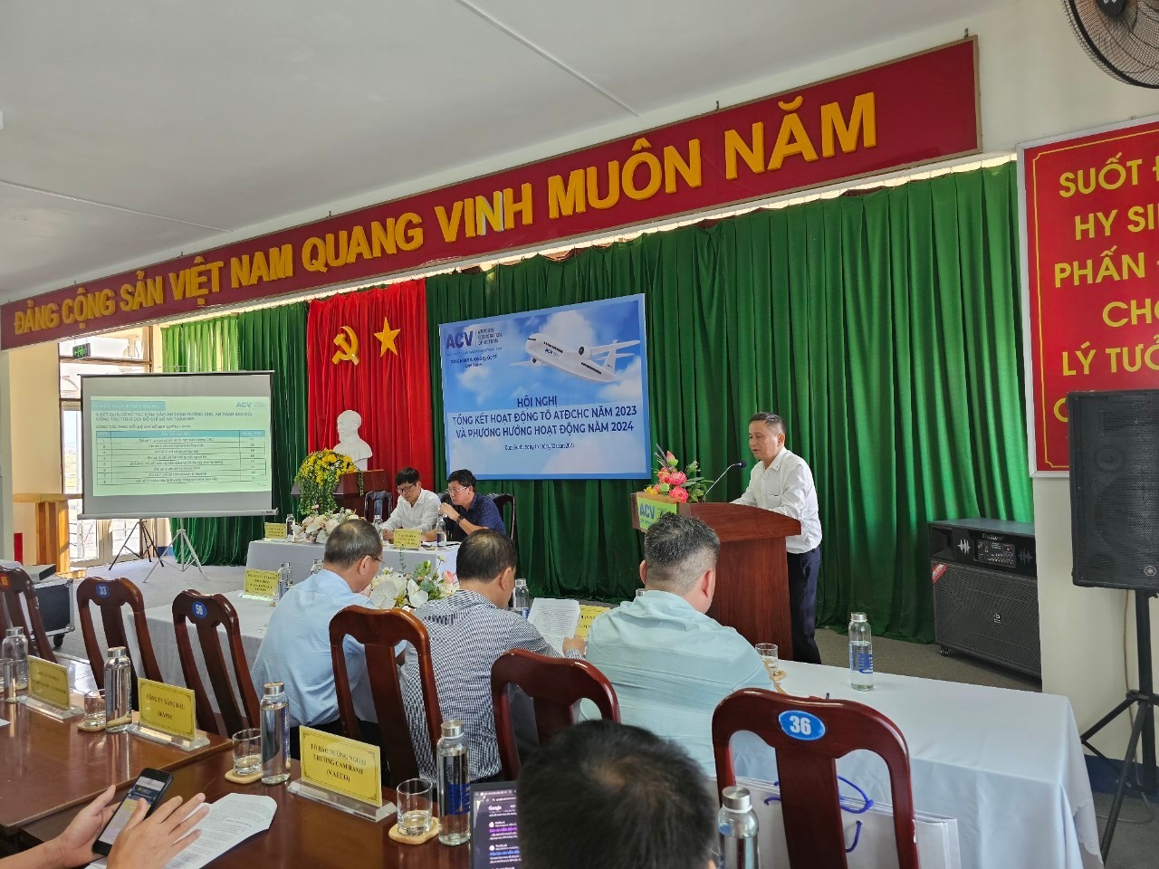 Chủ trì Hội nghị, ông Nguyễn Bá Quân, Tổ trưởng tổ An toàn đường CHC - Giám đốc Cảng HKQT Cam Ranh báo cáo các kết quả đã đạt được trong năm 2023, điển hình như: