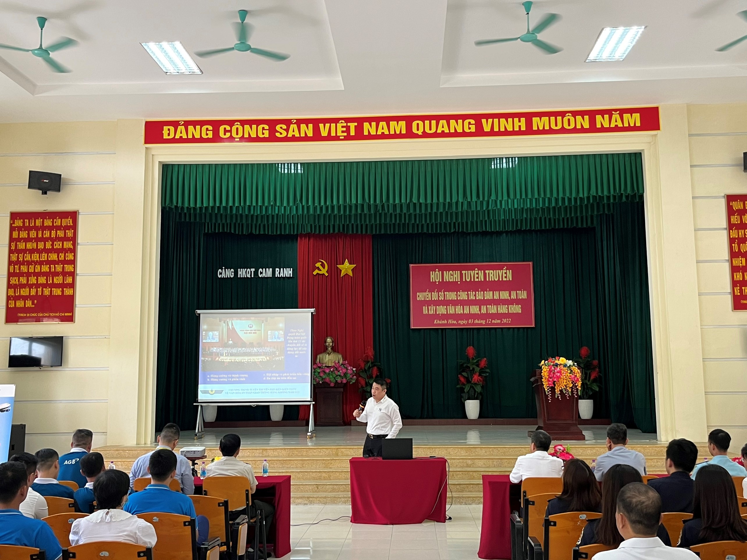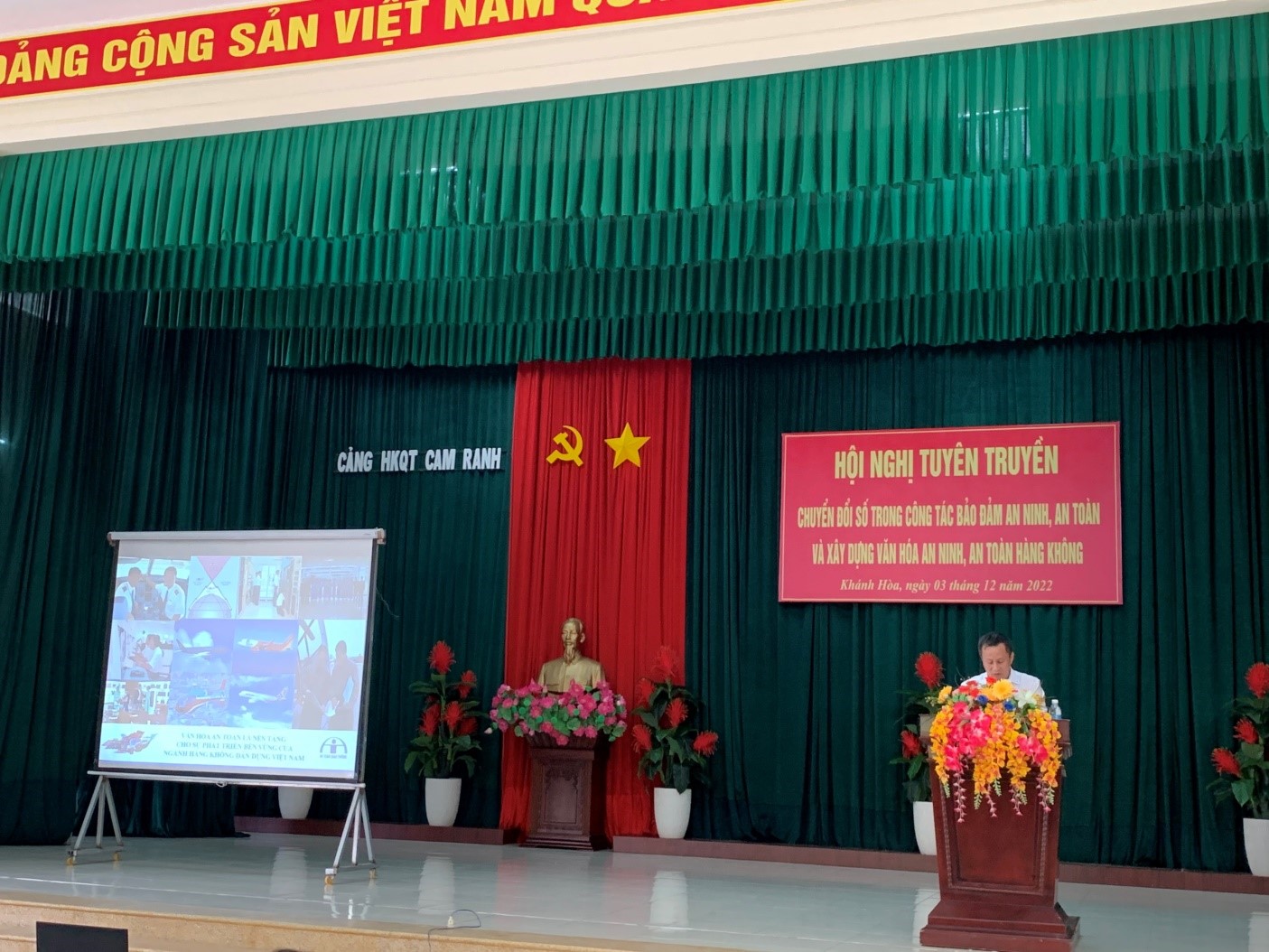Sáng ngày 03/12/2022, Cảng HKQT Cam Ranh đã tổ chức Hội nghị Tuyên truyền Văn hóa An toàn Hàng Không năm 2022 với chủ đề: “Chuyển đổi số gắn với nhiệm vụ bảo đảm an ninh, an toàn hàng không trong giai đoạn hiện nay”.