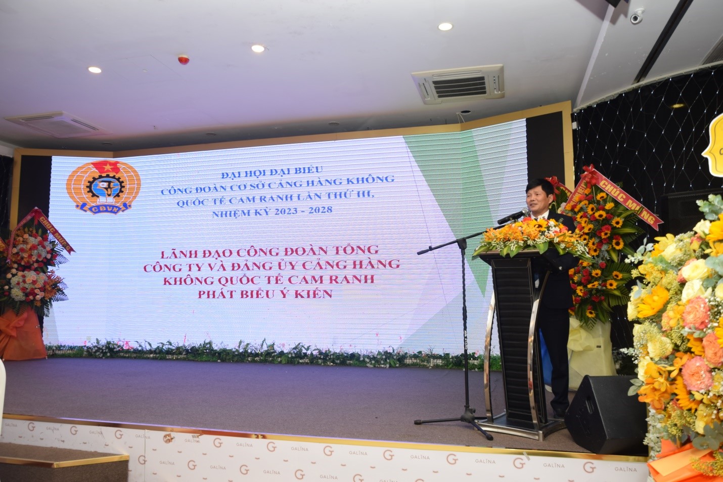 Đồng chí Đặng Tuấn Tú - Ủy viên Ban Thường vụ Đảng ủy, Chủ tịch Công đoàn Tổng công ty Cảng HKVN phát biểu chỉ đạo Đại hội