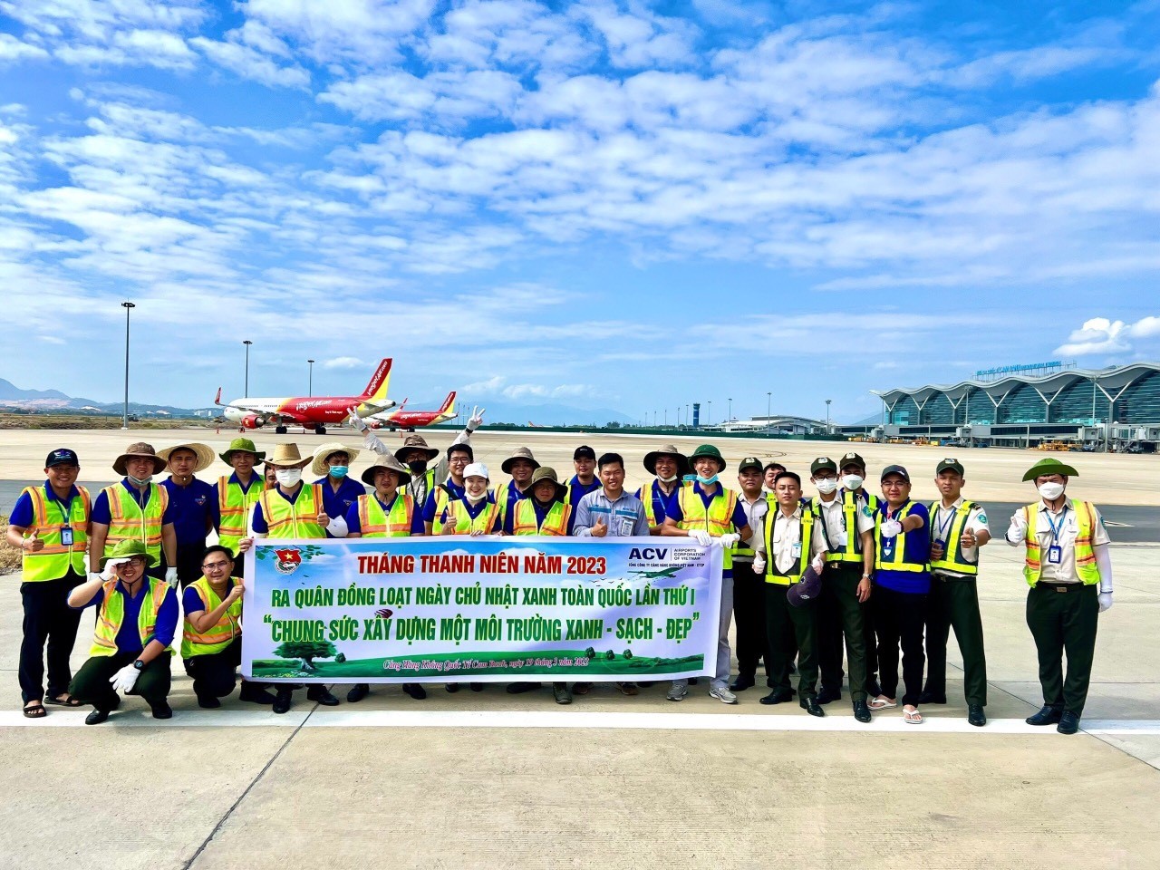 Phát huy vai trò xung kích của lực lượng đoàn viên thanh niên trong công tác xây dựng Cảng hàng không “Xanh - Sạch – Đẹp”, hưởng ứng “ Ngày Chủ nhật xanh”, tiến tới kỷ niệm 92 năm ngày thành lập Đoàn thanh niên cộng sản Hồ Chí Minh (26/03/1931 – 26/03/2023), ngày 19/03/2023, Đoàn Thanh niên Cảng HQKT Cam Ranh đã tổ chức ra quân dọn dẹp vệ sinh, phát quang cây cỏ và thu dọn FOD phát sinh trên toàn bộ khu bay.