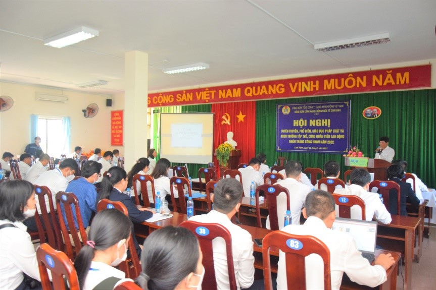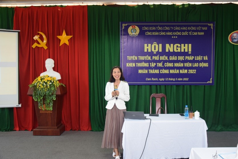 Nhân kỷ niệm Tháng công nhân năm 2022, sáng nay, ngày 12 tháng 05, Công đoàn Cảng HKQT Cam Ranh đã tổ chức Hội nghị tuyên truyền, phổ biến, giáo dục pháp luật và khen thưởng tập thể, công nhân viên lao động nhằm nâng cao nhận thức pháp luật và ghi nhận những đóng góp của tập thể, công nhân viên lao động trong sự phát triển Cảng hàng không.