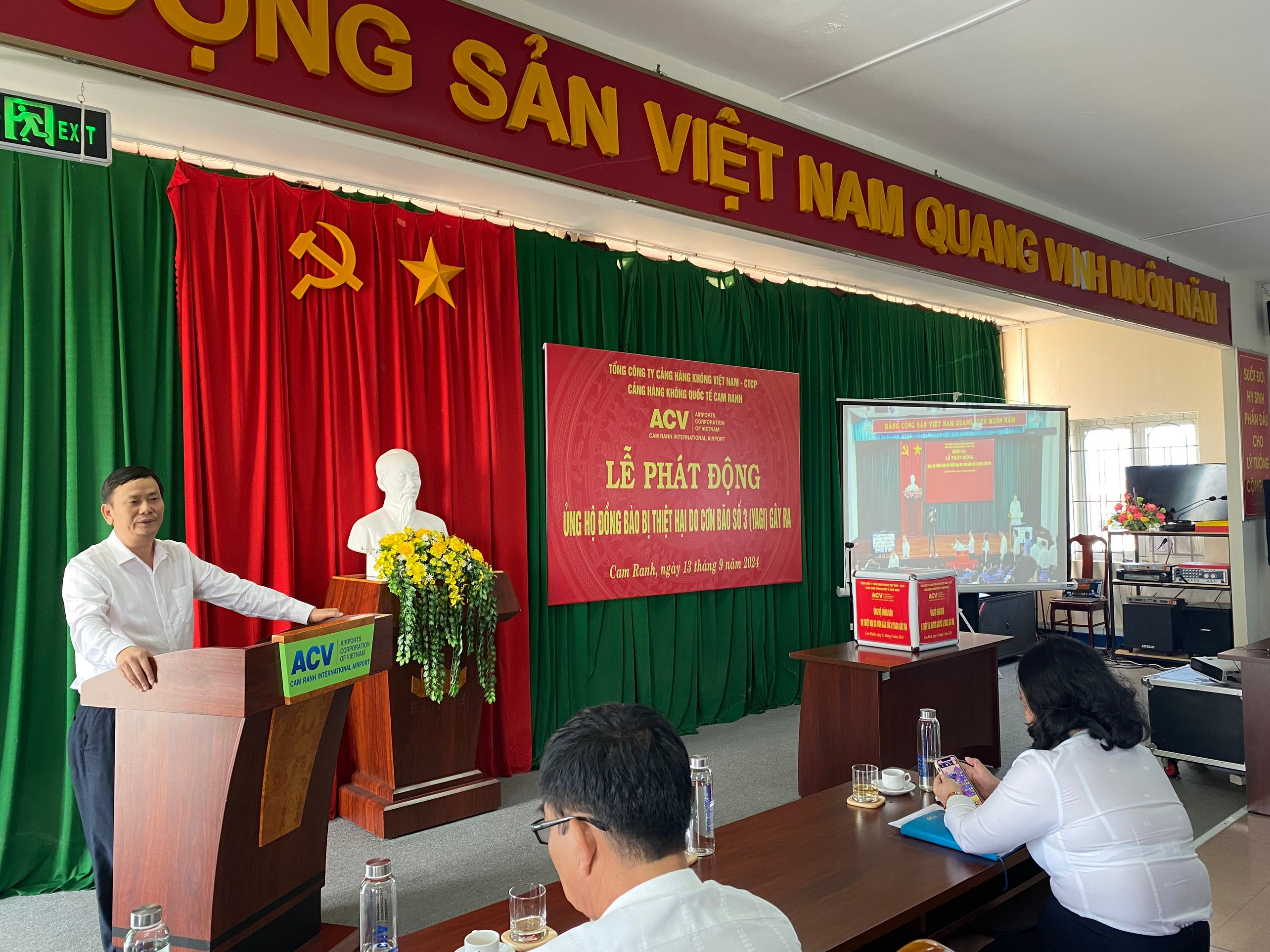 Tại buổi Lễ phát động, Ông Nguyễn Tài Minh, Phó Bí thư Đảng ủy, Phó Giám đốc phụ trách, Chủ tịch Công đoàn Cảng hàng không quốc tế Cam Ranh đã chia sẻ những khó khăn, mất mát của đồng bào các tỉnh miền Bắc do ảnh hưởng của cơn bão số 3, đồng thời kêu gọi toàn thể lãnh đạo, cán bộ, nhân viên, người lao động của Cảng hàng không quốc tế Cam Ranh chung tay quyên góp, hỗ trợ.