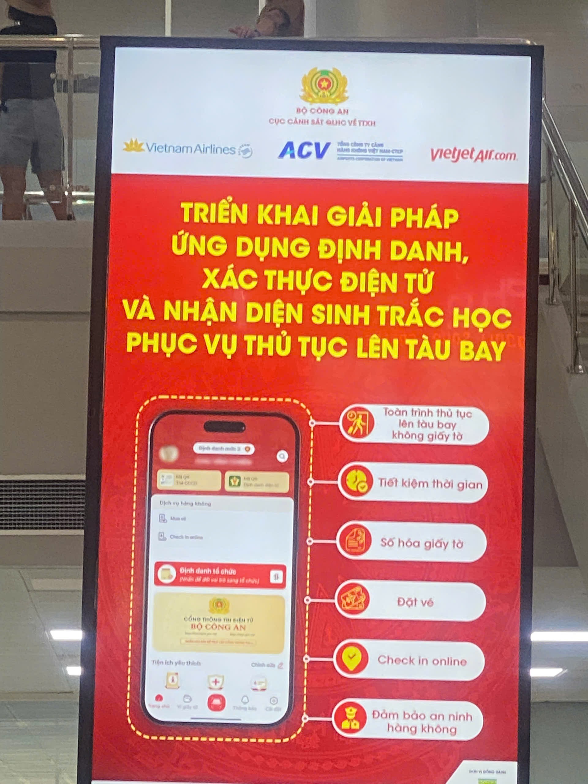Từ ngày 21/7/2025, Hành khách các hãng Vietnam Airlines và Vietjet Air qua Cảng hàng không quốc tế Cam Ranh có thể làm thủ tục cho các chuyến bay nội địa áp dụng giải pháp ứng dụng công nghệ sinh trắc học gắn với định danh và xác thực điện tử VneID để tối ưu hóa thủ tục hàng không. Thay vì xuất trình giấy tờ như trước đây, hành khách có thể dùng sinh trắc học (Face ID) để xác thực tại các bước làm thủ tục.