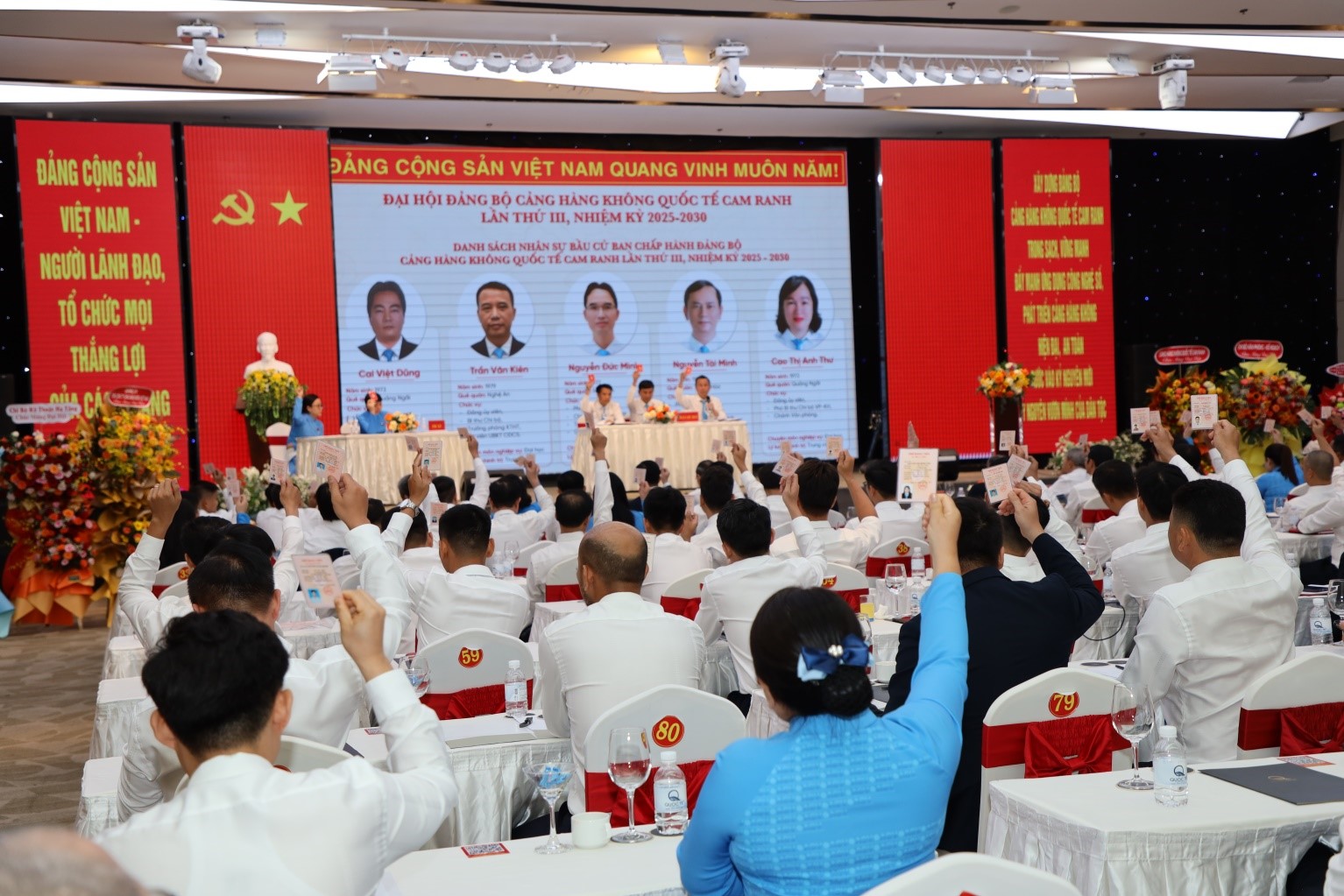 Sau một ngày làm việc nghiêm túc, sôi nổi, trong không khí đoàn kết và thống nhất cao, Đại hội đã thảo luận và nhất trí thông qua Báo cáo chính trị nhiệm kỳ 2025 – 2030. Đại hội cũng đã bầu ra Ban chấp hành Đảng bộ Cảng HKQT Cam Ranh nhiệm kỳ 2025 – 2030 gồm 05 đồng chí và đoàn Đại biểu tham dự Đại hội đại biểu của Đảng bộ Tổng công ty.
