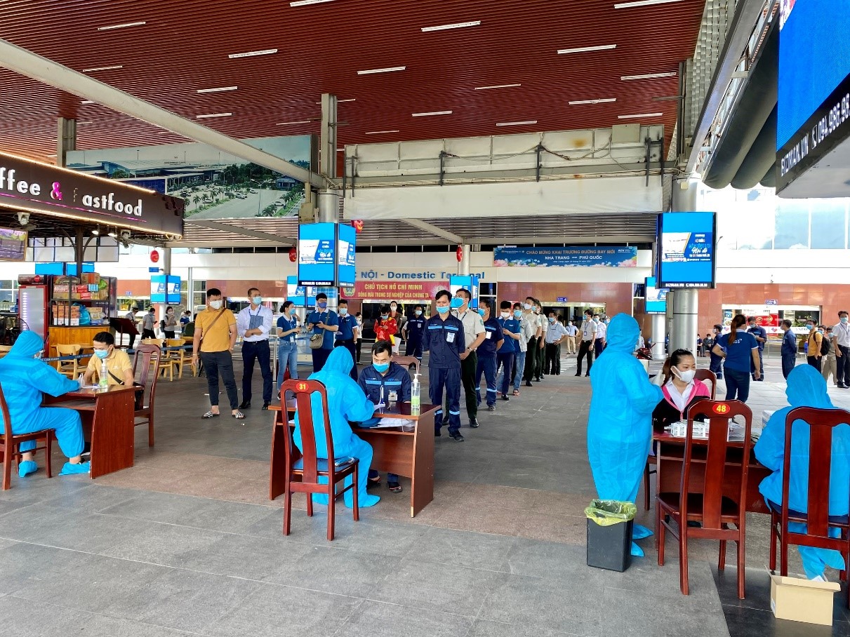 Trước diễn biến phức tạp của dịch bệnh Covid-19, Cảng HKQT Cam Ranh thực hiện nghiêm công tác phòng chống dịch, cung cấp đầy đủ trang thiết bị, vật tư y tế, dung dịch sát khuẩn, khẩu trang y tế, quần áo bảo hộ cho CBNV; phối hợp với Trung tâm kiểm dịch Y tế quốc tế tổ chức thường xuyên phun thuốc khử trùng khu vực sân bay, khu vực công cộng nhằm bảo đảm an toàn sức khỏe cho hành khách và CBNV.