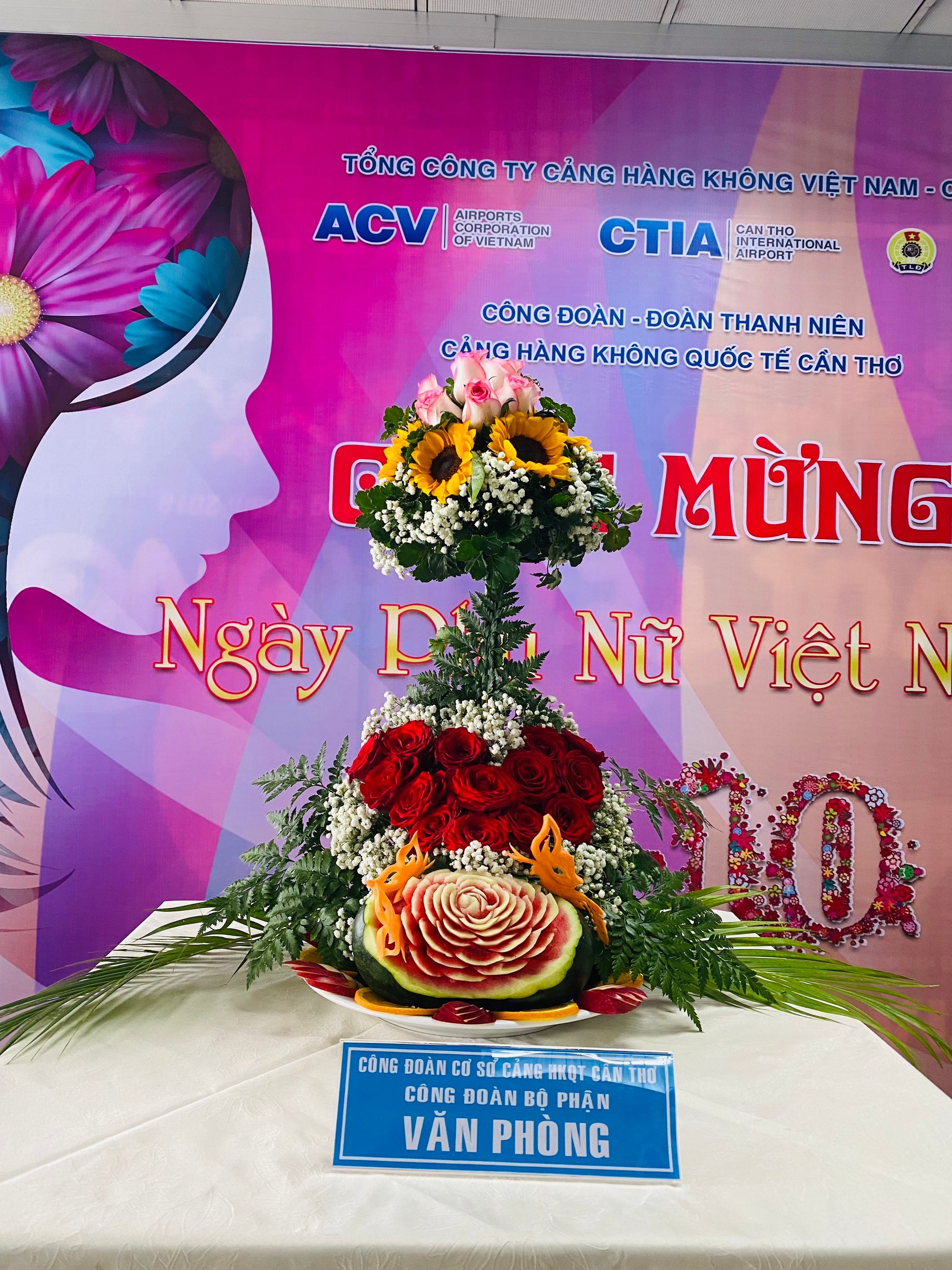 Hòa mình vào trong không khí náo nhiệt và phấn khởi chào mừng kỷ niệm 92 năm ngày Phụ nữ Việt Nam (20/10/1930 – 20/10/2022), Ban chấp hành công đoàn cơ sở (BCH CĐCS) Cảng HKQT Cần Thơ đã tổ chức hội thi cắm hoa và trang trí trái cây nghệ thuật. Hoạt động tổ chức này đã thu hút sự quan tâm và tham gia nhiệt tình của các cán bộ viên chức, người lao động đến từ 04 Công đoàn bộ phận trong đơn vị.