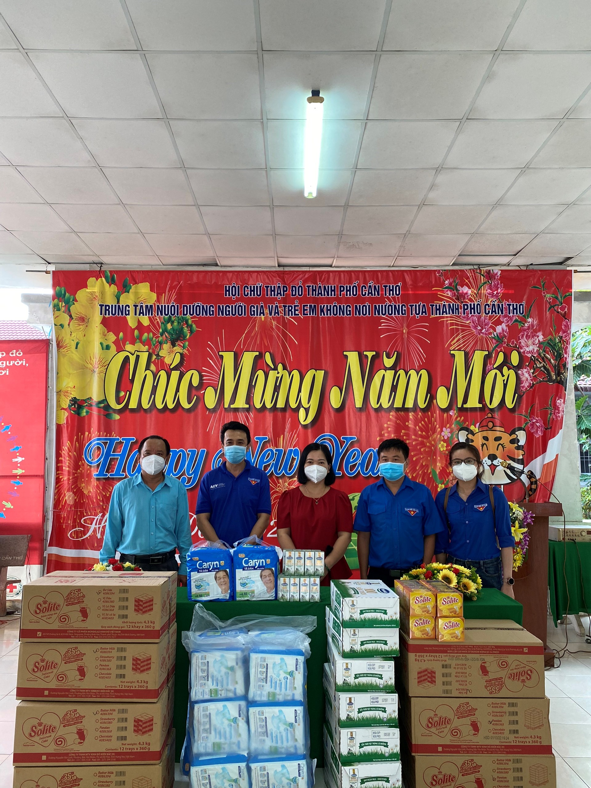 Đoàn cũng gửi tặng cho Trung tâm Bảo trợ Xã hội thành phố Cần Thơ, nơi nuôi dưỡng trẻ em mồ côi, trẻ em nhiễm chất độc Dioxin, những nhu yếu phẩm cần thiết, cùng chung tay chăm lo cho các em được đón Tết.