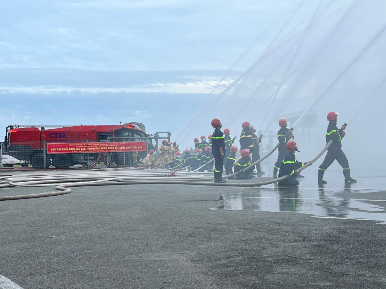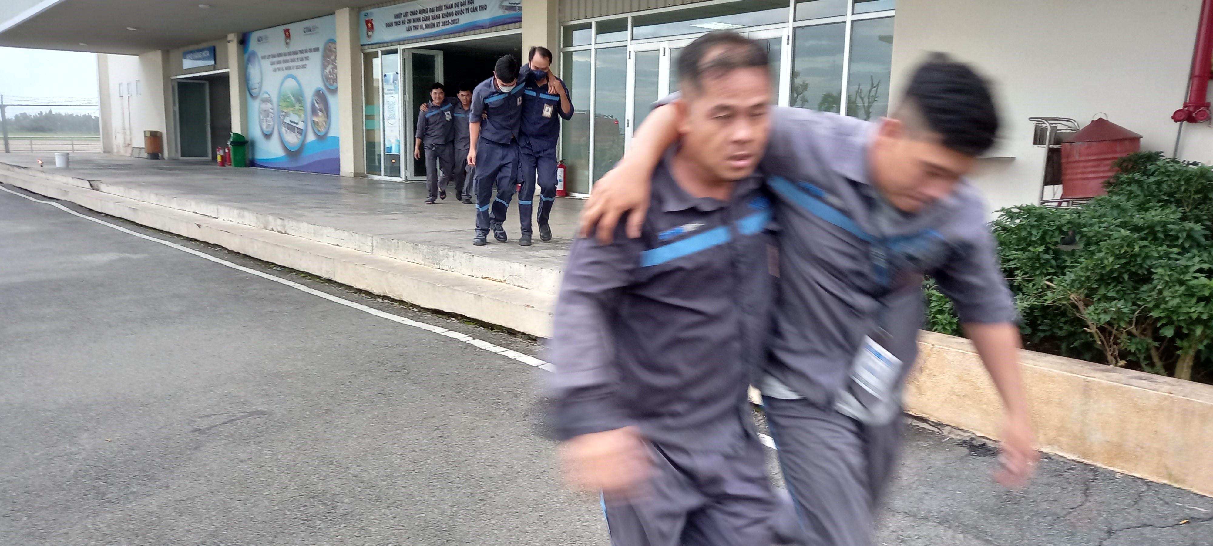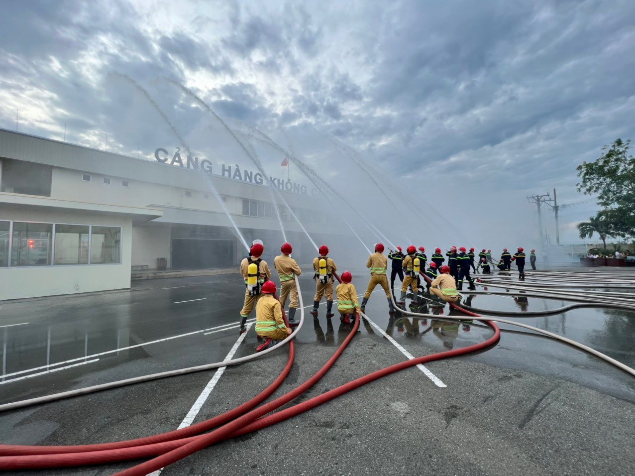 Cảng hàng không quốc tế Cần Thơ tổ chức diễn tập thực hành Phương án chữa cháy, cứu nạn, tình huống sự cố thiên tai với tình huống giả định “Do giông lốc lớn, tốc mái tôn, nước vào trần nhà văn phòng, làm chập điện gây cháy Nhà điều hành – ga hàng hóa”