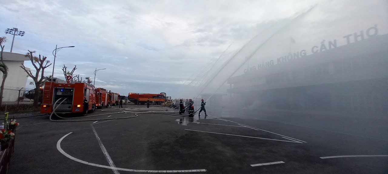 Nhằm tăng cường năng lực xử lý khi có tình huống thực tế diễn ra, ngày 15/8/2022 Cảng hàng không quốc tế Cần Thơ đã tổ chức diễn tập thực hành Phương án chữa cháy, cứu nạn, tình huống sự cố thiên tai với tình huống giả định “Do giông lốc lớn, tốc mái tôn, nước vào trần nhà văn phòng, làm chập điện gây cháy Nhà điều hành – ga hàng hóa”