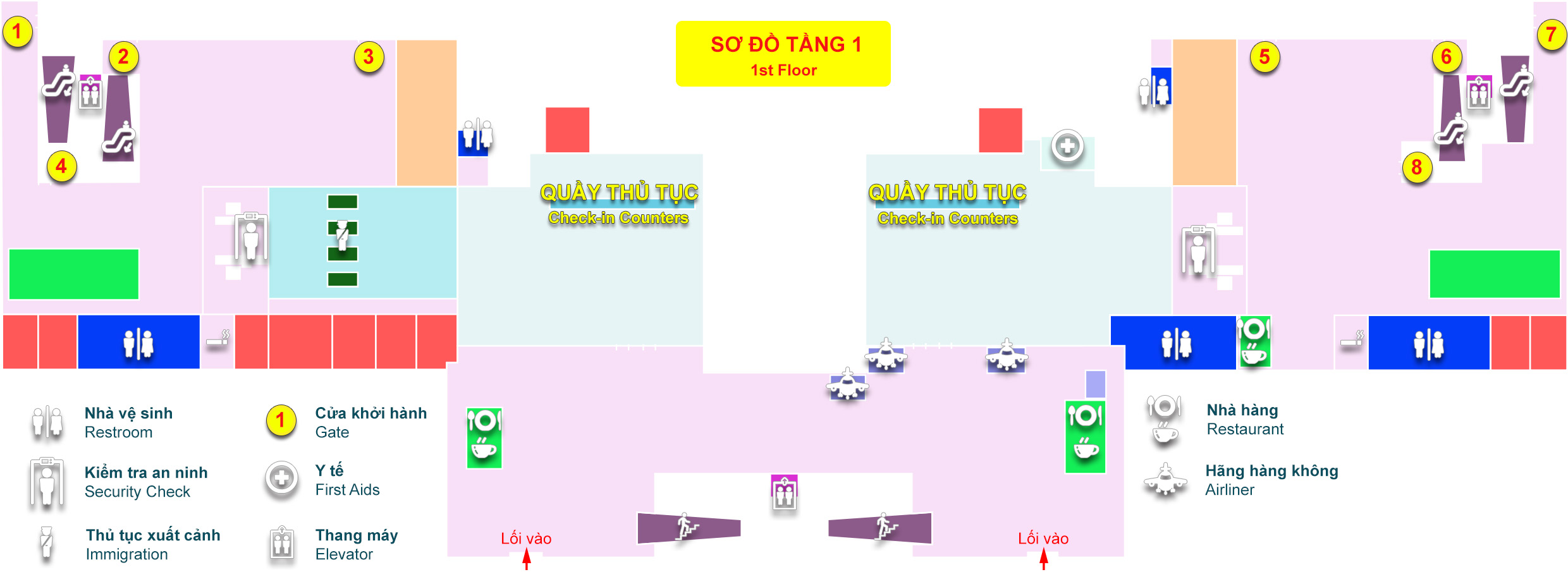Khu vực cách ly nhà ga hành khách quốc nội và quốc tế: Được tính từ sau điểm kiểm tra soi chiếu hành khách, hành lý xách tay đến cửa ra tàu bay.