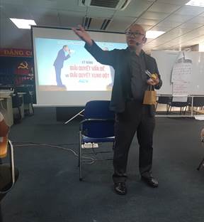 Khóa học nhằm mục đích cung cấp cho cán bộ quản lý những kiến thức và các kỹ thuật để giải quyết vấn đề, giải quyết xung đột. Với nội dung được xây dựng phong phú, phù hợp đi kèm phương pháp giảng dạy tích cực, chuyên nghiệp và sinh động của giảng viên Diệp Minh Nghị đã thực sự cuốn hút các thành viên tham dự khóa học nhiệt tình, không khí lớp học lúc nào cũng sôi nổi, tràn đầy năng lượng, học viên chủ động tương tác với các .
