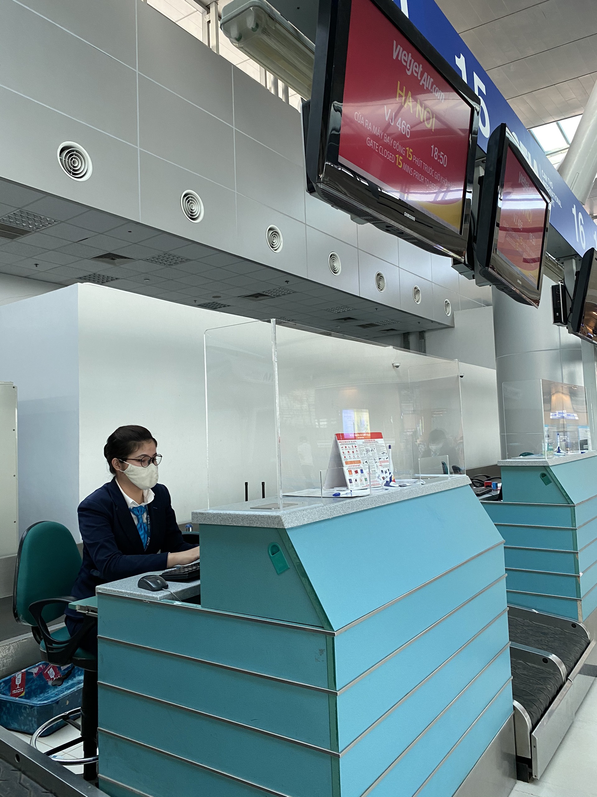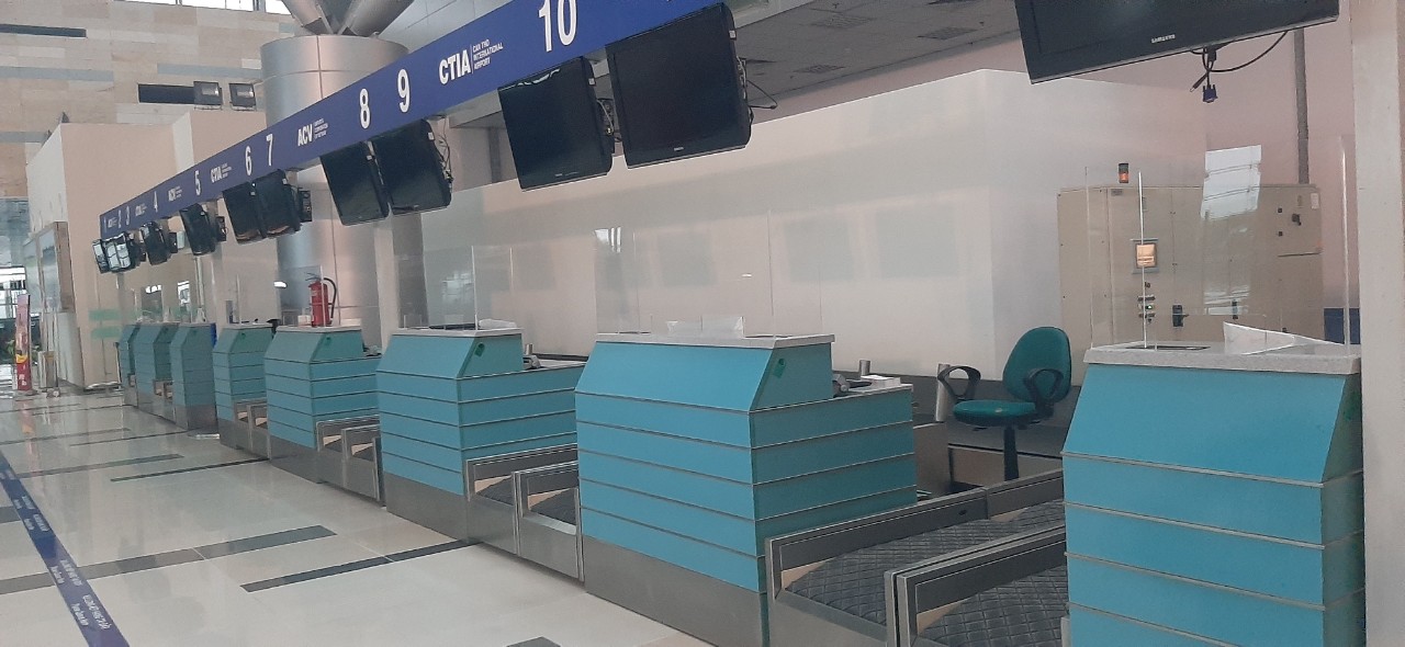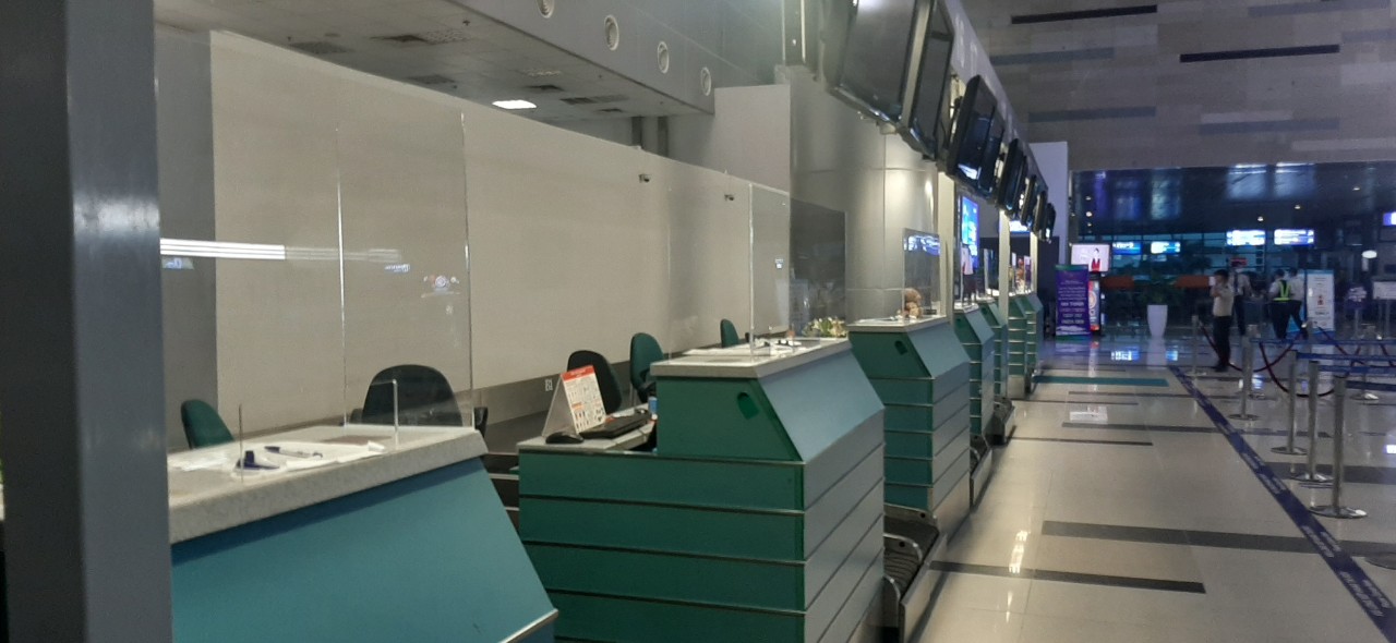 ✈️ Lắp đặt các tấm chắn tại các quầy làm thủ tục hàng không nhằm tăng cường biện pháp an toàn phòng, chống lây nhiễm dịch bệnh; hạn chế tối đa giọt bắn giữa hành khách với nhân viên...