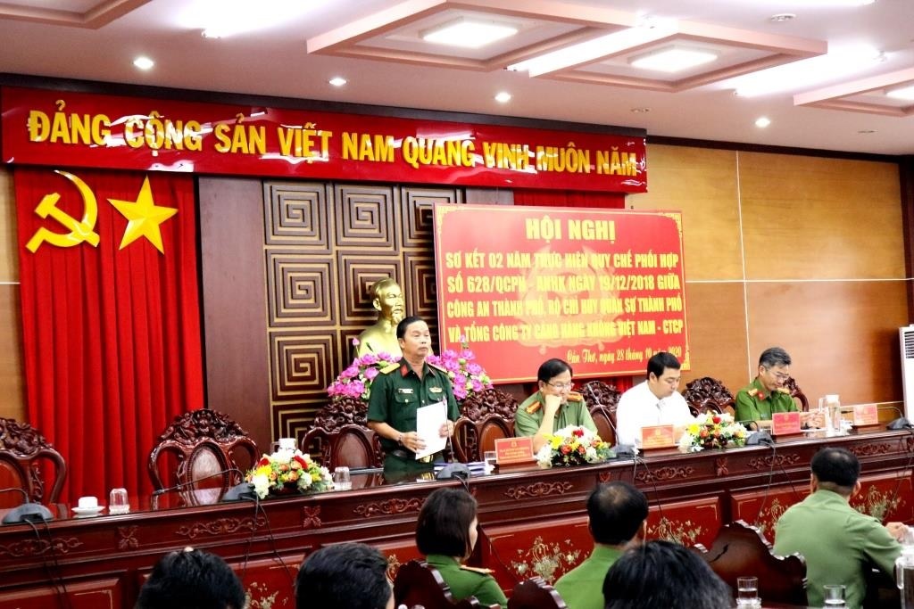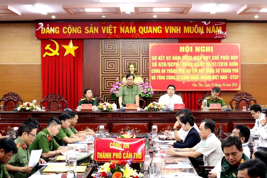 Ngày 28/10/2020, Cảng HKQT Cần Thơ đã tổ chức Hội nghị Sơ kết 02 năm thực hiện Quy chế phối hợp số 628/QCPH-ANHK ngày 19/12/2018 giữa Công an, Quân đội thành phố Cần Thơ và Tổng công ty Cảng hàng không Việt Nam – CTCP trong công tác trao đổi, xử lý thông tin và phối hợp đảm bảo an ninh, an toàn hàng không dân dụng tại Cảng hàng không quốc tế Cần Thơ. Hội nghị có sự tham dự của lãnh đạo Công an, Bộ Chỉ huy quân sự thành phố Cần Thơ, lãnh đạo Tổng Công ty Cảng hàng không Việt Nam, lãnh đạo Ban An ninh, Ban An toàn – Kiểm soát chất lượng Tổng Công ty, Ban Giám đốc và lãnh đạo các Phòng chuyên môn của Cảng HKQT Cần Thơ. Ngoài ra Hội nghị còn có sự tham dự của tất cả các đơn vị liên quan trong ngành hàng không hoạt động tại Cảng HKQT Cần Thơ như Cảng vụ hàng không, Đài kiểm soát không lưu, Hải quan cửa khẩu, Kỹ thuật máy bay, Xăng dầu hàng không, Đài dẫn đường DVOR/DME và dại diện tất cả các hang hàng không đang khai thác tại Cảng.
