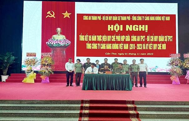 Tại Hội nghị, Đại tá Trần Văn Dương, Phó Giám đốc Công an TP Cần Thơ; Thượng tá Huỳnh Văn Hung, Chỉ huy trưởng Bộ Chỉ huy quân sự TP Cần Thơ và Đồng chí Nguyễn Đức Hùng – Phó Tổng Giám đốc Tổng công ty Cảng hàng không Việt Nam – CTCP cũng đã tiếp tục ký kết Quy chế mới nhằm tăng cường công tác phối hợp đảm bảo an ninh, an toàn hàng không và trật tự an toàn xã hội tại Cảng hàng không quốc tế Cần Thơ giai đoạn tiếp theo.
