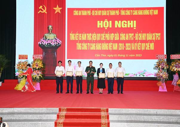 Chiều ngày 01/11/2023, tại Bộ Chỉ huy Quân sự thành phố Cần Thơ, đã tổ chức hội nghị tổng kết 5 năm thực hiện Quy chế phối hợp giữa Công an - Quân sự thành phố và Tổng công ty Cảng hàng không Việt Nam (ACV) trong công tác trao đổi, xử lý thông tin và phối hợp đảm bảo an ninh, an toàn hàng không dân dụng tại Cảng hàng không quốc tế Cần Thơ (giai đoạn 2018-2023).