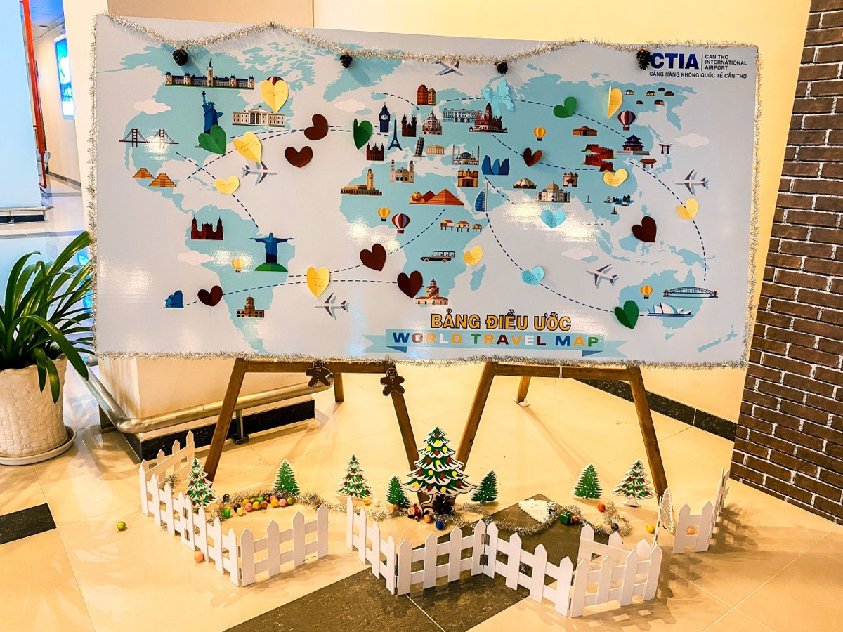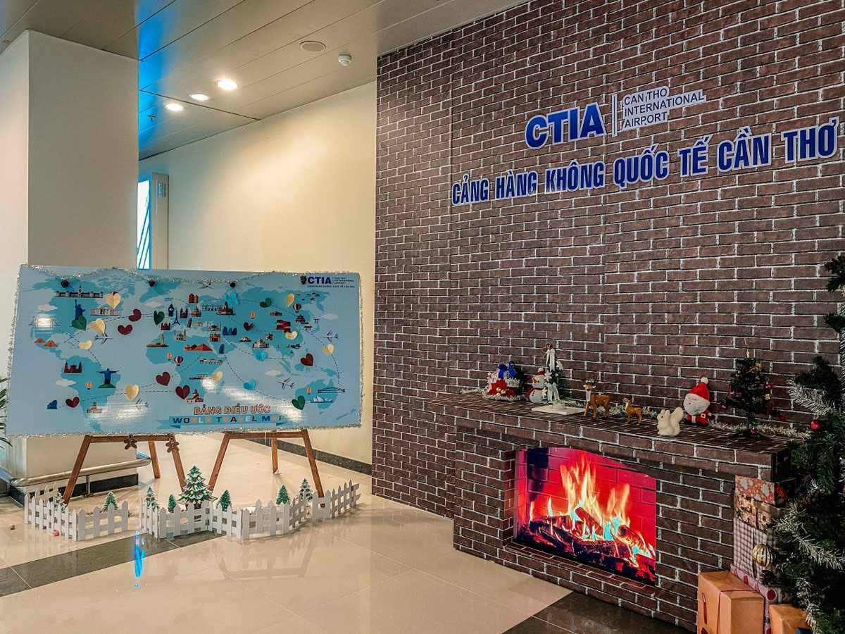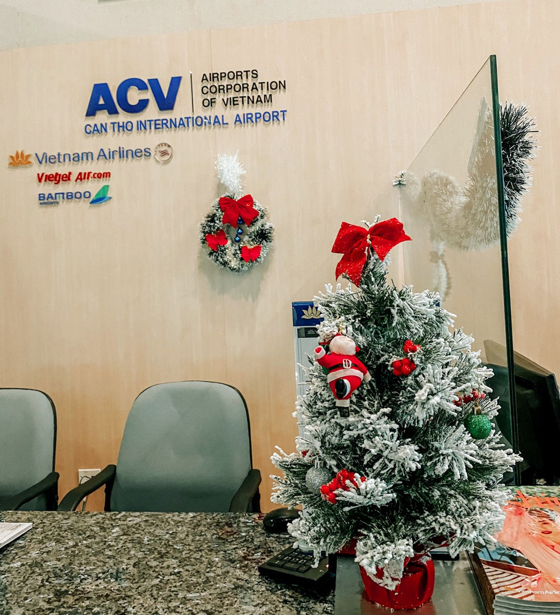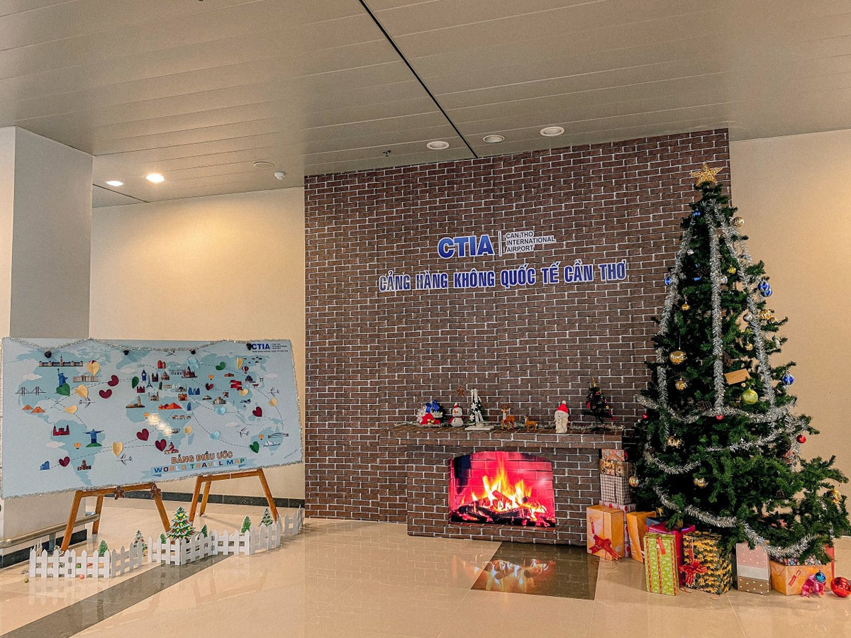 Trang trí tiểu cảnh Giáng sinh luôn là một hoạt động thú vị tại Cảng HKQT Cần Thơ. Cây thông là một phần không thể thiếu trong lễ giáng sinh, được trang trí với đầy đủ các sắc màu, đèn nhấp nháy, ngôi sao, những hộp quà xinh xắn…. đã thổi lên không khí giáng sinh tưng bừng tại Cảng HKQT Cần Thơ.