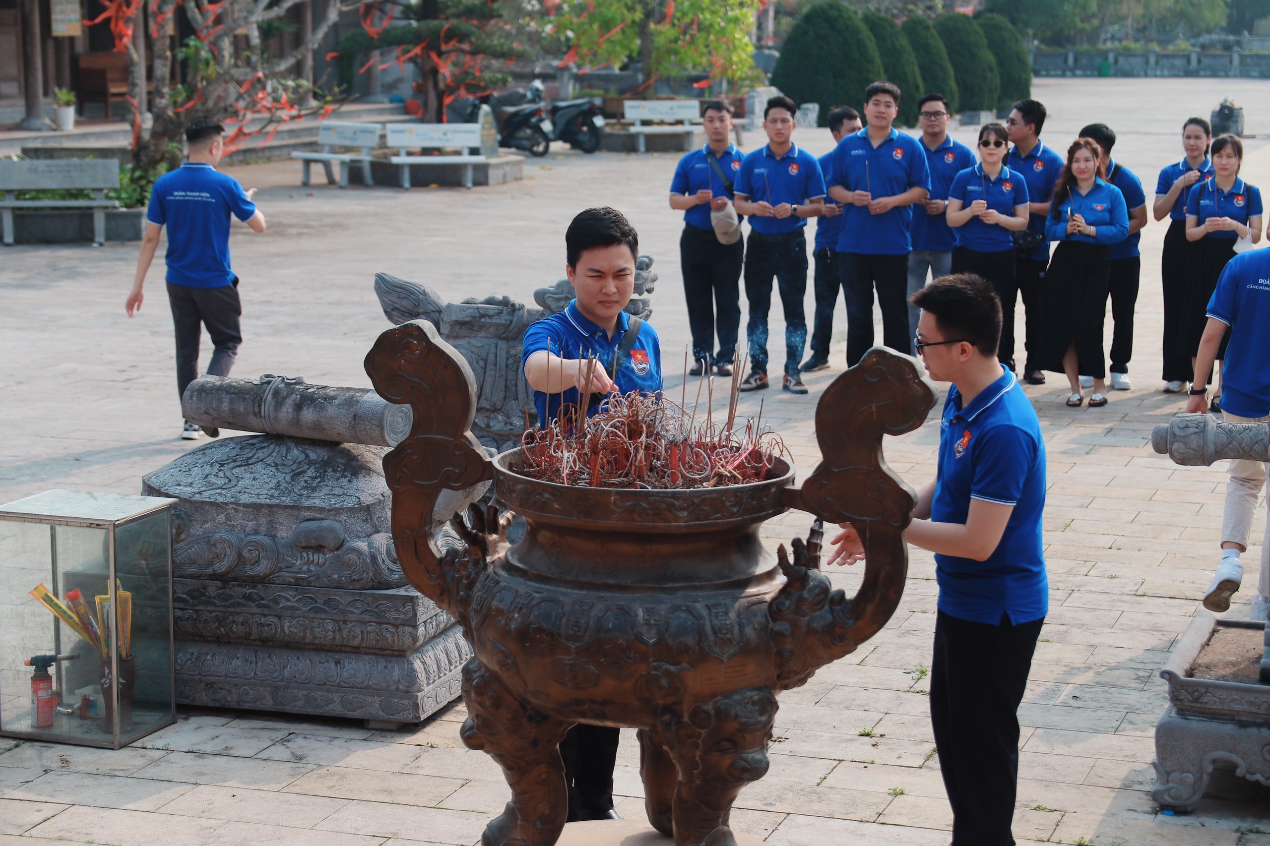Đoàn Thanh niên đã dâng hương tại tượng đài kỷ niệm di tích đường Hồ Chí Minh trên biển. Trước tượng đài anh linh tưởng nhớ các anh hùng liệt sĩ, các cán bộ chiến sĩ và nhân dân đã anh dũng chiến đấu hi sinh trong quá trình vận chuyển vũ khí và và lương thực chi viện cho miền Nam làm nên con đường Hồ Chí Minh trên biển “Một con đường không dấu, tàu số, trí hiếu, trung, dũng”. Các anh đã đi xa nhưng tên tuổi, dấu ấn oanh liệt của các anh và con đường vẫn sống mãi với thời gian, trường tồn cùng dân tộc, mãi mãi lưu truyền trong lịch sử đấu tranh chống giặc ngoại xâm của dân tộc.