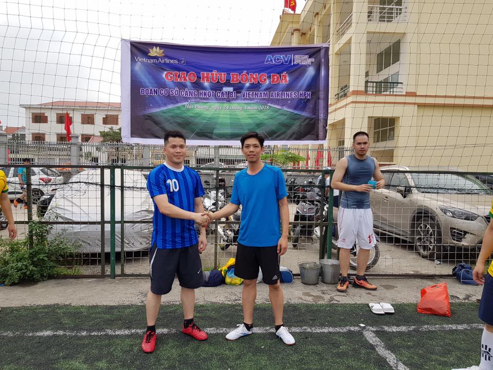Nhằm tăng cường tinh thần đoàn kết, giao lưu, học hỏi giữa các đơn vị. Ngày 24/04/2018, tại sân vận động Đằng Lâm - quận Hải An - TP.Hải Phòng, đã diễn ra trận giao hữu bóng đá giữa Đoàn cơ sở Cảng HKQT Cát Bi và Vietnamairlines HPH. Kết thúc trận đấu, Đoàn cơ sở Cảng HKQT Cát Bi đã xuất sắc giành chiến thắng với tỉ số 2-1. Dưới đây là một số hình ảnh về trận đấu: