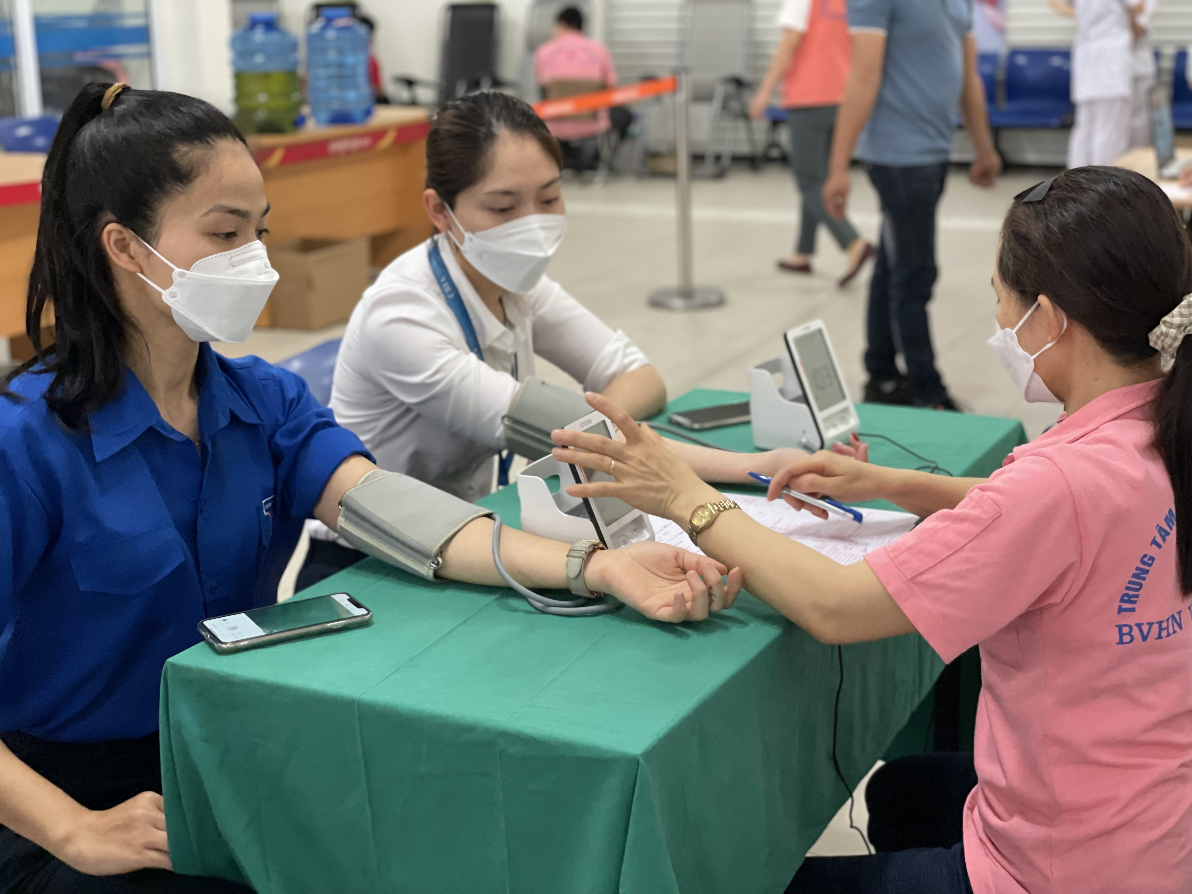 Cán bộ, công nhân viên, người lao động làm việc tại Cảng HKQT Cát Bi khám và tư vấn sức khỏe trước khi tham gia hiến máu tình nguyện