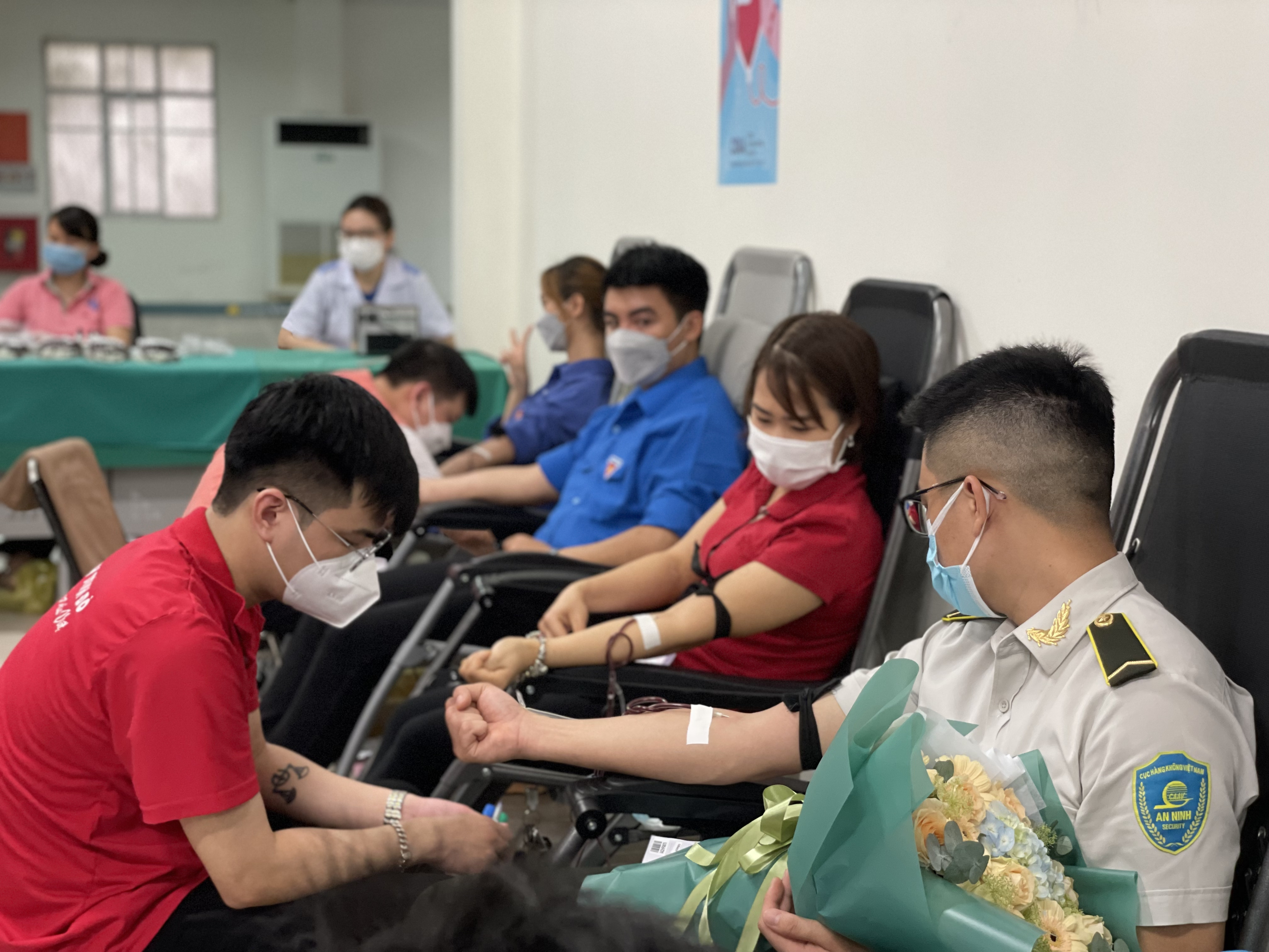 Cán bộ, CNV tại Cảng HKQT Cát Bi hiến máu, nghỉ ngơi và nhận giấy chứng nhận sau khi hiến máu