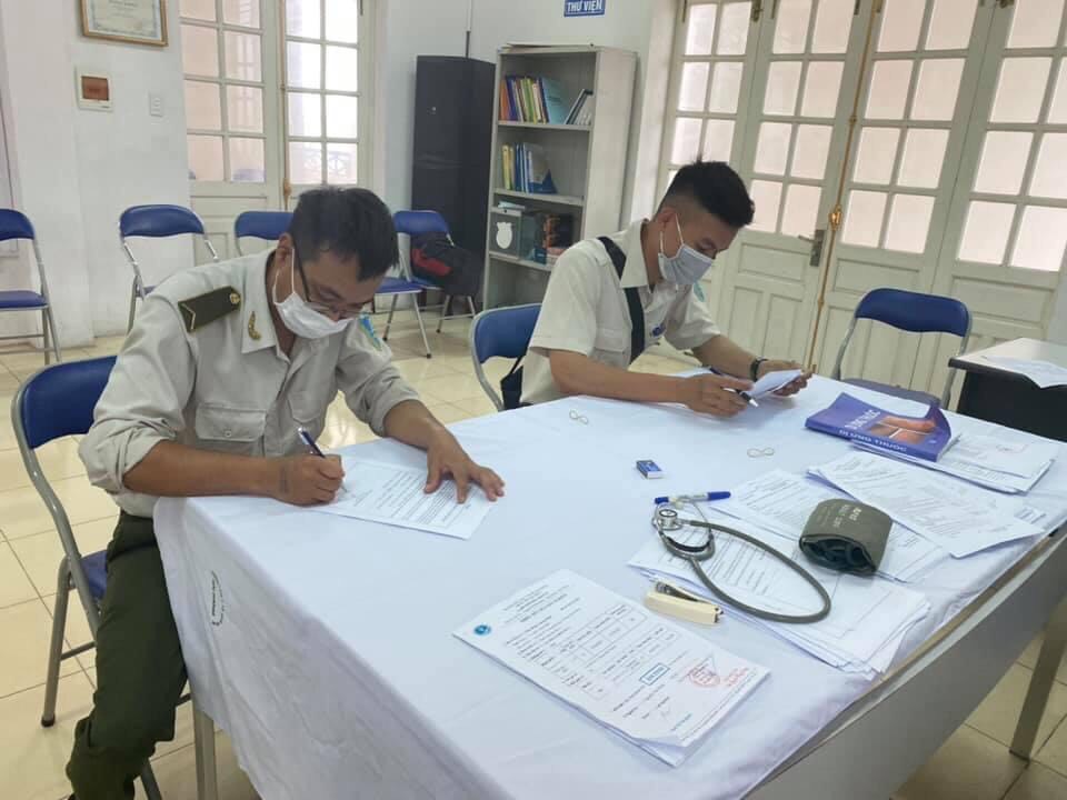 CB-CNV được tư vấn và khám sàng lọc trước khi tiêm vắc xin phòng Covid-19 (Ảnh: Cảng HKQT Cát Bi)