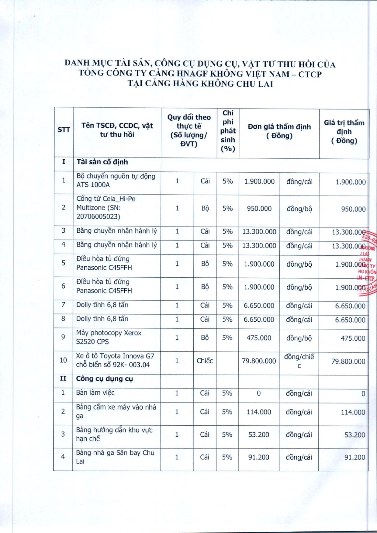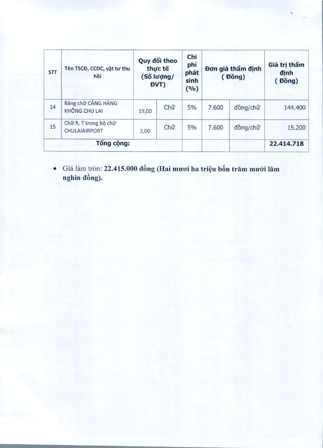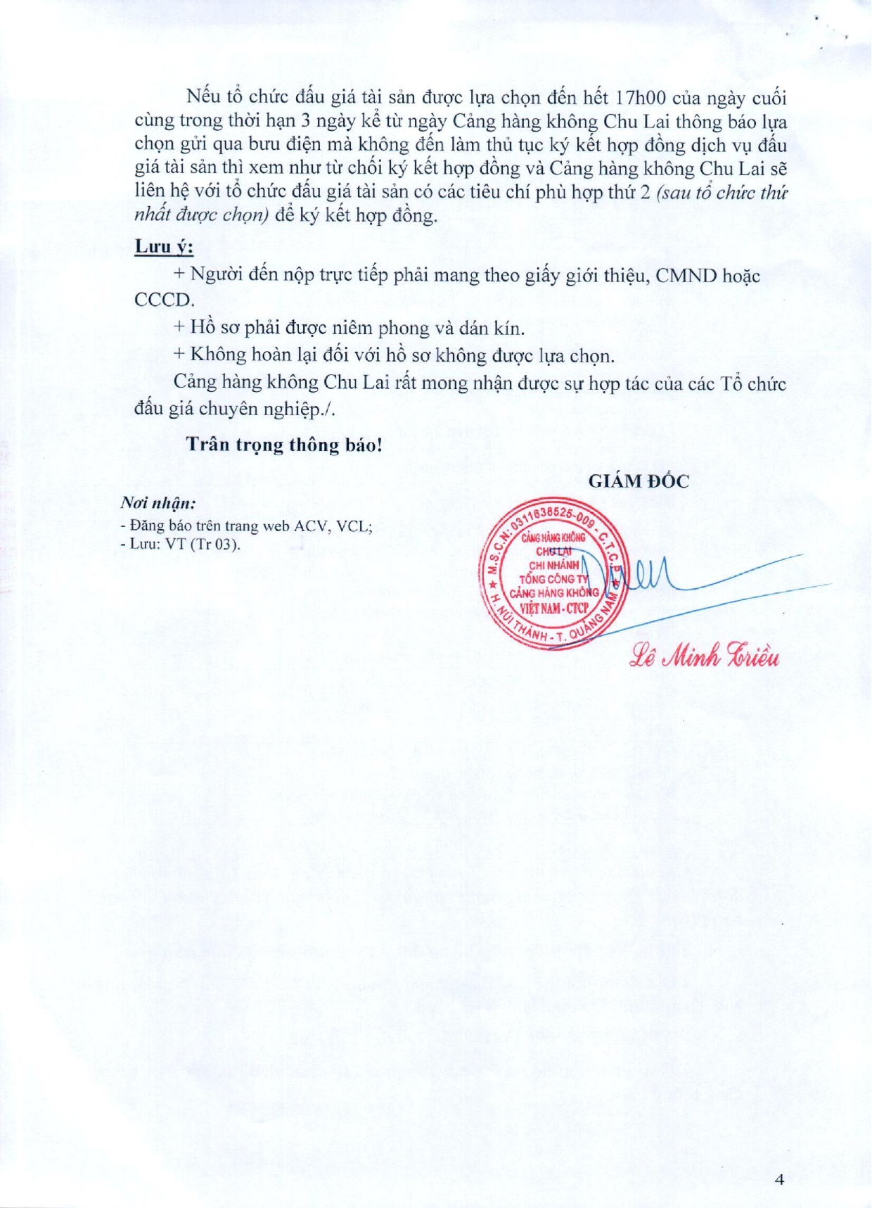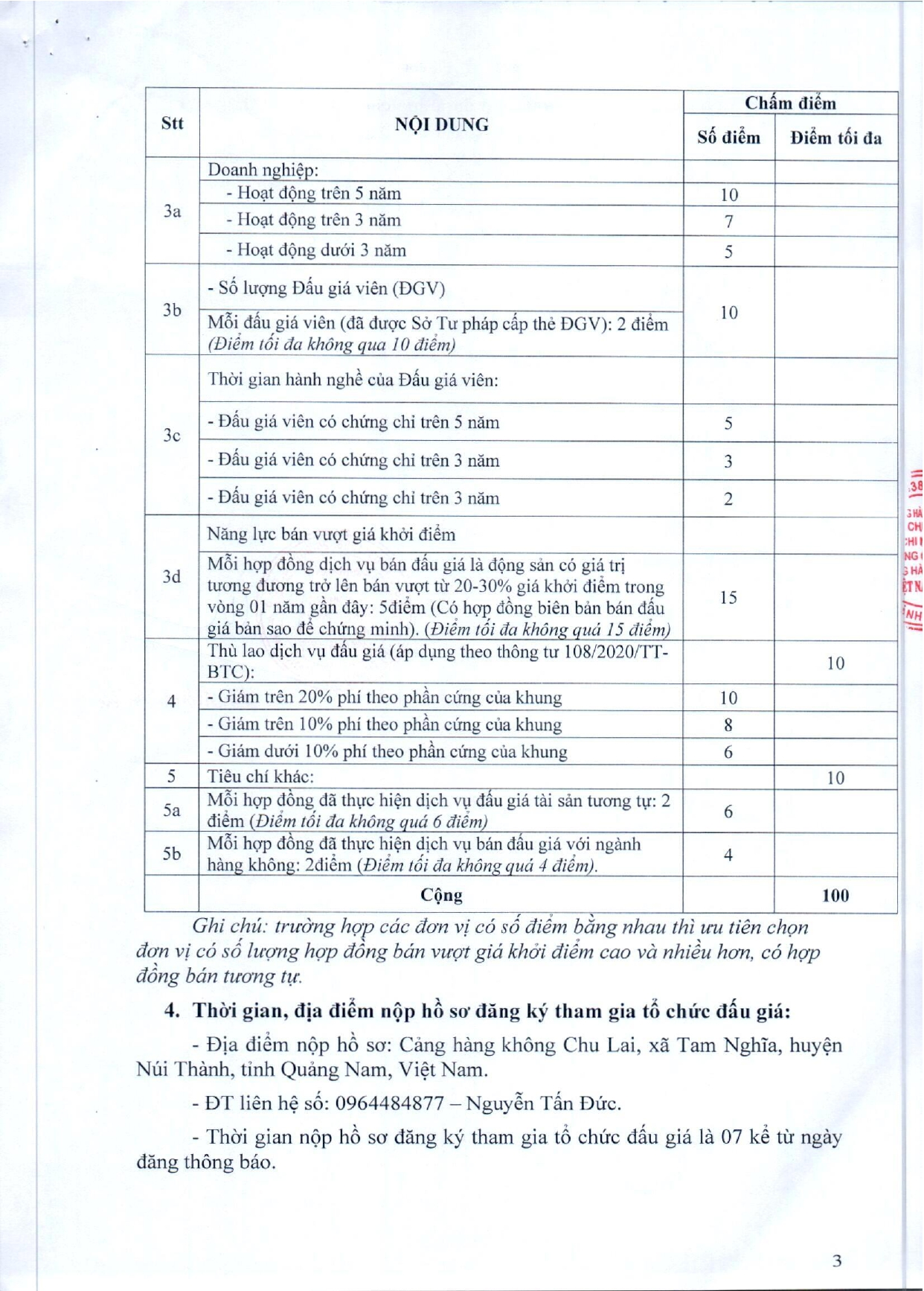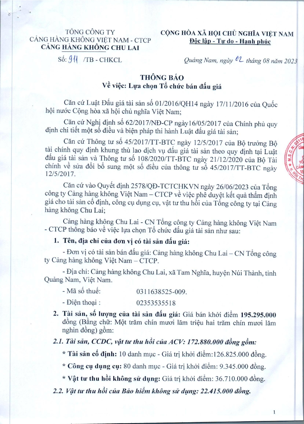 CẢNG HÀNG KHÔNG CHU LAI: THÔNG BÁO LỰA CHỌN TỔ CHỨC ĐẤU GIÁ TÀI SẢN